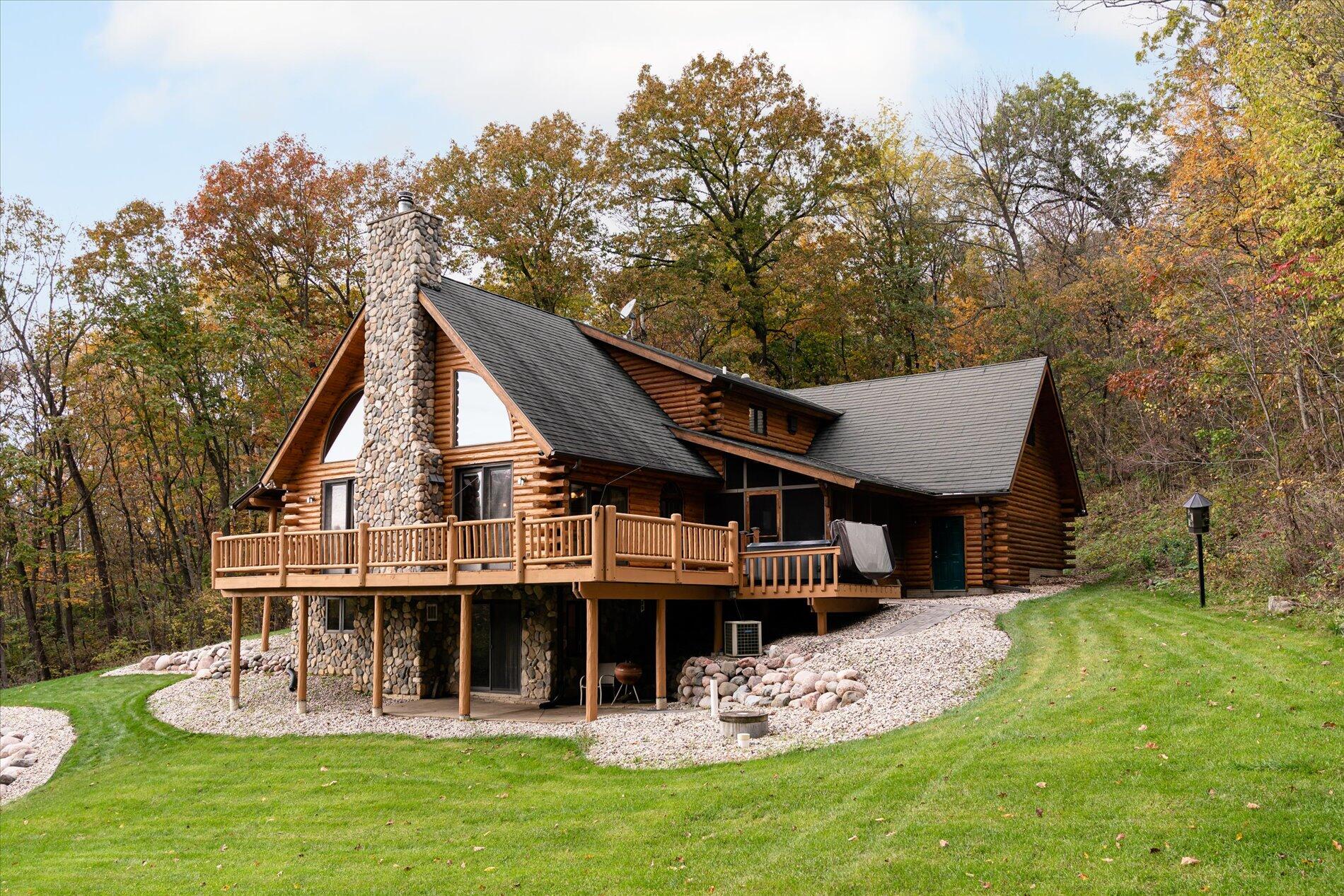 Amazing log home nestled on 39.5 wooded acres! The home features a gourmet kitchen with granite counters and butternut custom cabinets! The wood burning fireplace with towering floor to ceiling stone chimney is sure to warm the soul on a cold winter day. Enjoy summer evenings in the screened back porch and hot tub. The log exterior was professionally stained and gutters added with leaf guards and heat strips in 2021. Also available with 98 acres for $989,000 See MLS 1771075. Located 4 miles south of Bangor with easy access to the Interstate 90 or State Hwy 33 for an easy commute to and from La Crosse.