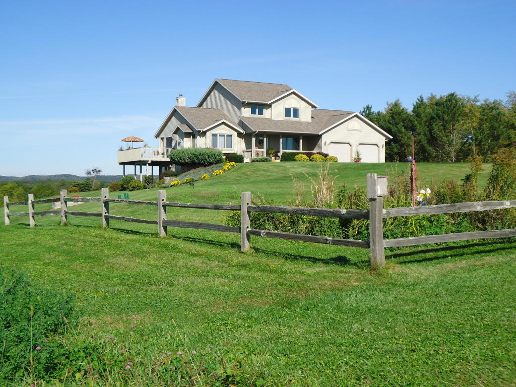 LOVELY MASTERCRAFT (1998) RIDGETOP HOME (3300SF) W PANORAMIC VIEW OF HILLS/VALLEYS. 2 STRY CONTEMP HOME NESTLED ON 39AC PRIME HUNTING LAND W LUSH WOODS/GROOMED TRAILS. ENJOY WILDLIFE, INCL TROPHY DEER HUNTING (TURKEY/SMALL GAME). LG KTCHN/DININGRM, 1/2 BTH, OFFICE/DEN, 4 SEASON RM, VAULTD LIVG RM, GAS FP, OPEN STRCASES. LL: WALKOUT FAM RM, WOOD BURNING STOVE, BDRM, FULL BTH, WKROOM, LOTS STORAGE. UP: MASTER W/WALKIN, ADDTL BDRM, FULL BATH, WALKIN SHWR & WHIRLPL. ATTCHD INSULATED 2.5 CAR GRAGE. 10X14 GRDN SHED.600SF WRAP AROUND DECK/LG FRONT PORCH.10 MIN FROM SPARTA,20 MIN FROM THE MALL.