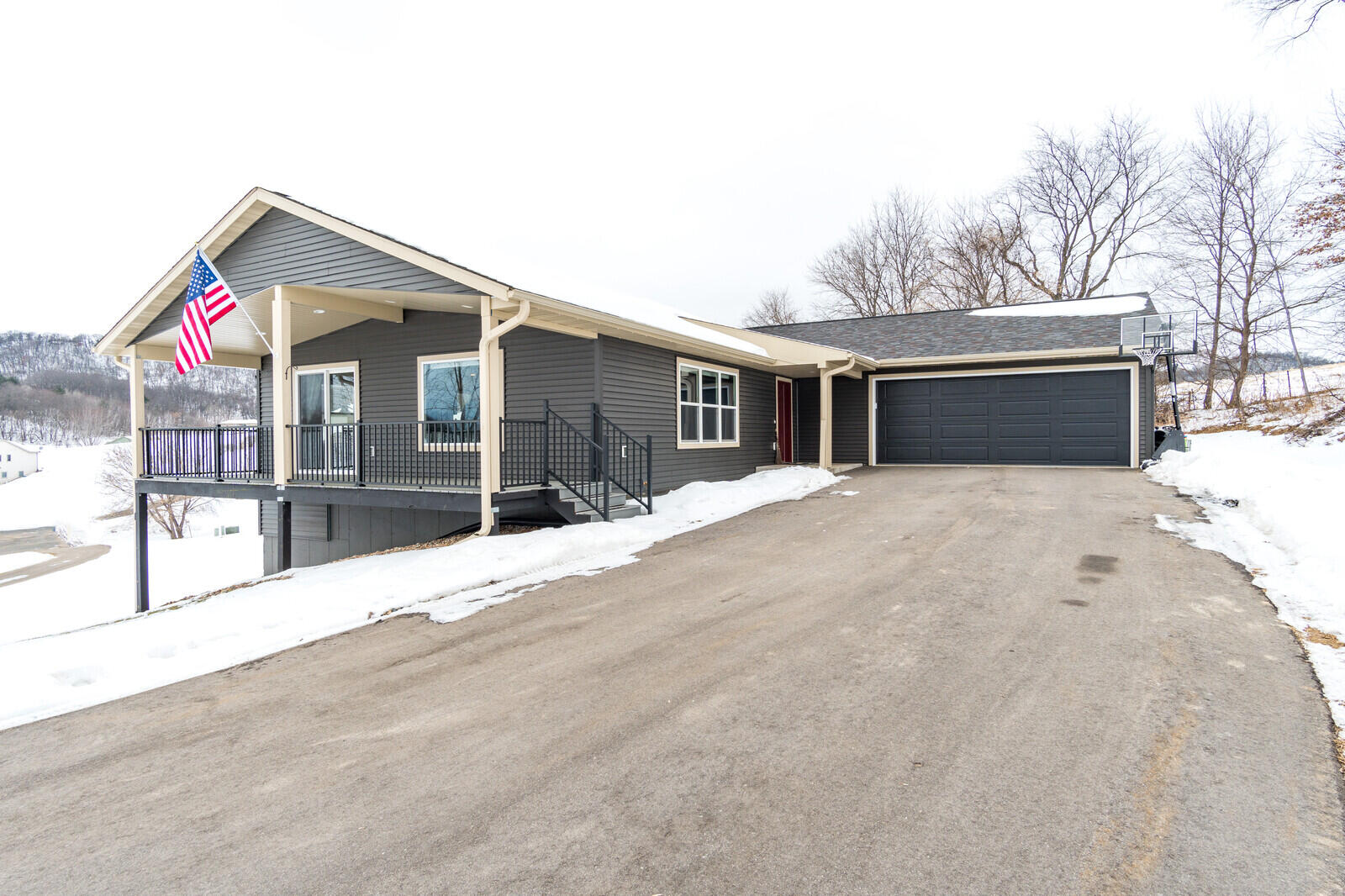 Located at the end of a cul-de-sac & perched up on a hill w/amazing southern views sits this spacious walk-out ranch (2021 build) w/ample yard space (apprx 2.63 acres)! Enjoy the comforts of a newer home without the costs & stress of building! This home offers flexible living arrangements w/an open concept great room, spacious kitchen (WIP, quartz tops, appl incld), 3 - 4 bedrooms on the main floor, convenient laundry/mudroom, w/zero entry to the attached garage! You'll love the views from the front covered front porch overlooking the valley views! The walk-out lower level features a family, flex space/rec room, a wet bar, a 3/4 bath, additional bedroom(s), & great storage space! Addt'l features include: LVP throughout (except stairs to LL), appl incld, & a separate buildable lot!