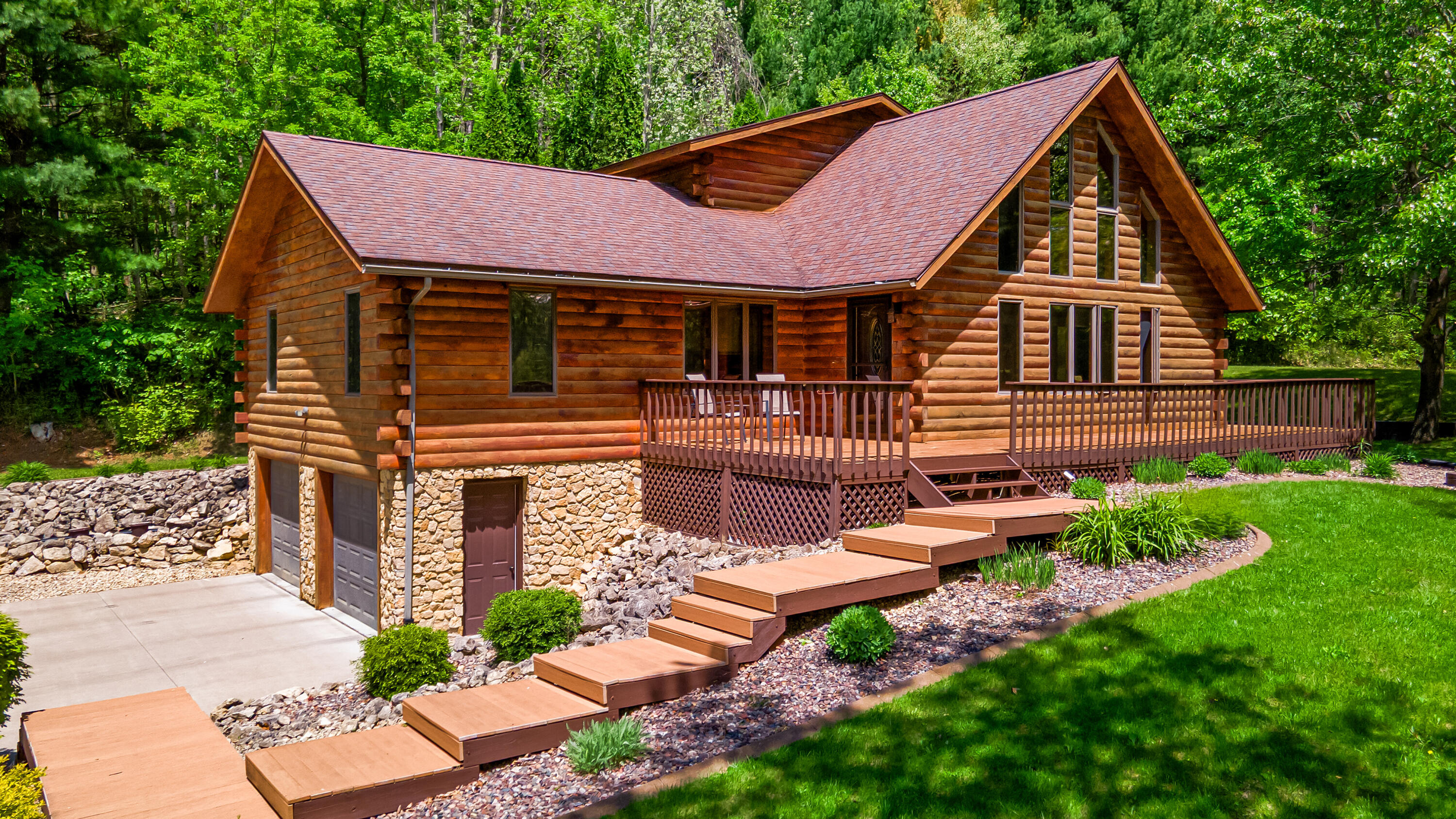 Tranquil oasis on 4.83 wooded acres! This 4BR, 2.5BA log-sided home offers privacy and charm. The primary suite is nestled in the loft, with 3 bedrooms on the main level. Enjoy an open, spacious living room and a kitchen with oak cabinetry, newer appliances, backsplash, pantry, and workstation. Step out to the back deck or relax on the wraparound front deck. The finished lower level features a family room, rec room, and half bath. HVAC new in 2018, water heater in 2022, Anderson windows. Includes a 2-car attached garage, 24x30 heated detached garage, and a 12x20 outbuilding with overhead door, concrete, and electric. Take in the sounds of nature and wildlife without sacrificing the convenience of location. Only mins off Hwy 54/93 and centrally located between La Crosse and Winona.