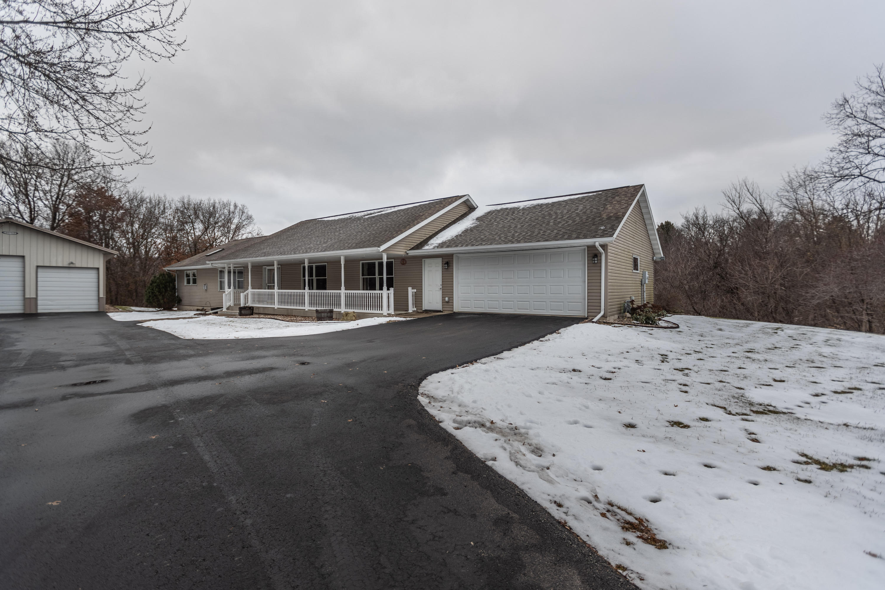 Start 2020 out with a bang! Make this perfectly laid out open concept ranch yours today. You will love relaxing on the front porch, back deck or sun room-so many options to enjoy the nature that surrounds this property. Master suite features walk in closet, jetted tub and walk-in shower. Main floor laundry room. Lower level features finished family room with projector and remote controlled screen-what a fun way to watch movies or sports! Stubbed for a 3rd bathroom and 4th bedroom could be added as well. Even with that space finished there is still ample storage in the lower level. Two car attached heated garage PLUS a 30 x 40 pole shed with loft for all your toys. All of this sits on a 3.8 acre lot.
