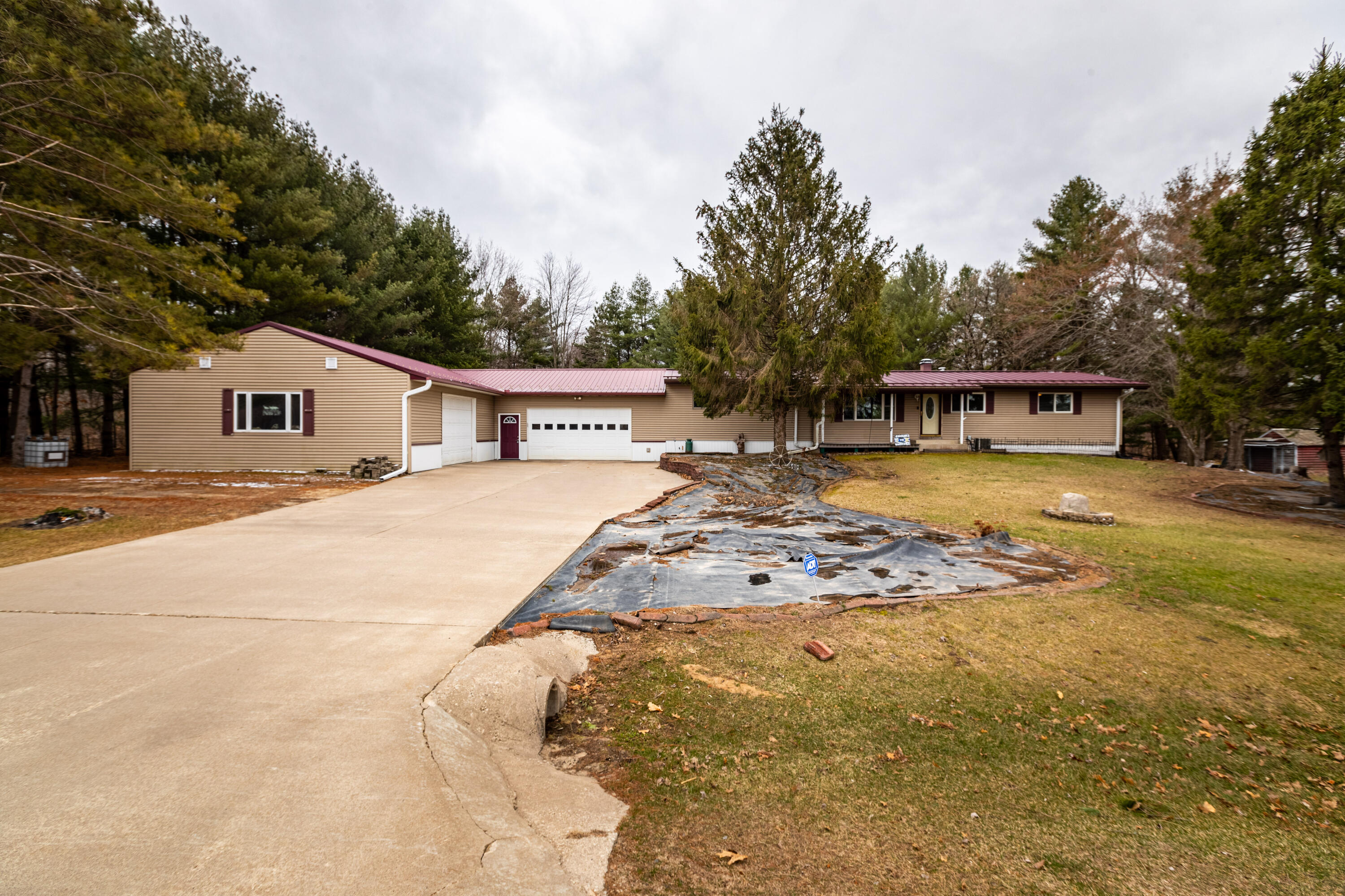 Sprawling 3 bed, 1 bath home sitting on 2 acres located close to 500 acres of public hunting land, UTV trails and the river. Large, attached garage that is finished out for the perfect workshop. Open concept design with vaulted ceilings and a basement ready to be finished off with your own touch. Outside wood boiler included in sale.