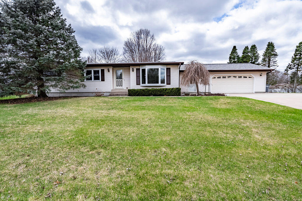 Discover the ease of single-level living in this well-maintained ranch home, perfectly situated on a generous .45-acre lot within easy walking distance to Sand Lake Elementary! Enjoy the durability of a steel roof, solid 6-panel doors, and elegant oak trim throughout. The attached garage is insulated and sheetrocked for added comfort and functionality. Updated windows (approx. 6 years old) enhance energy efficiency. The inviting kitchen boasts Corian countertops, a convenient pantry closet, and a bright solar tube. Relax in the living room with its charming bay window or step into the delightful 4-season room, featuring French doors that open to the dining area. You'll appreciate the nice-sized bedrooms and the convenience of a sprinkler system. The seller has also ensured a lush lawn.