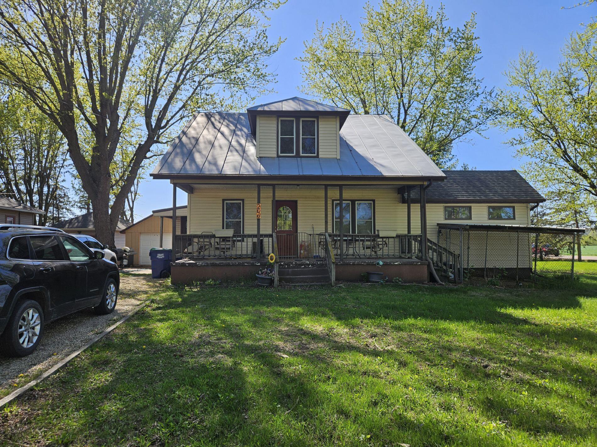 Enjoy small town country living in the Village of Rockland. Double size lot with front porch that overlooks the park. Eat in kitchen with also a formal dining room. Large private deck off living room. Main floor master bedroom and 3 bedrooms upstairs. Garage extend back into shop area and then again into additional storage. Metal roof on majority of house with newer water softener. Bangor Schools and close to bike trail.