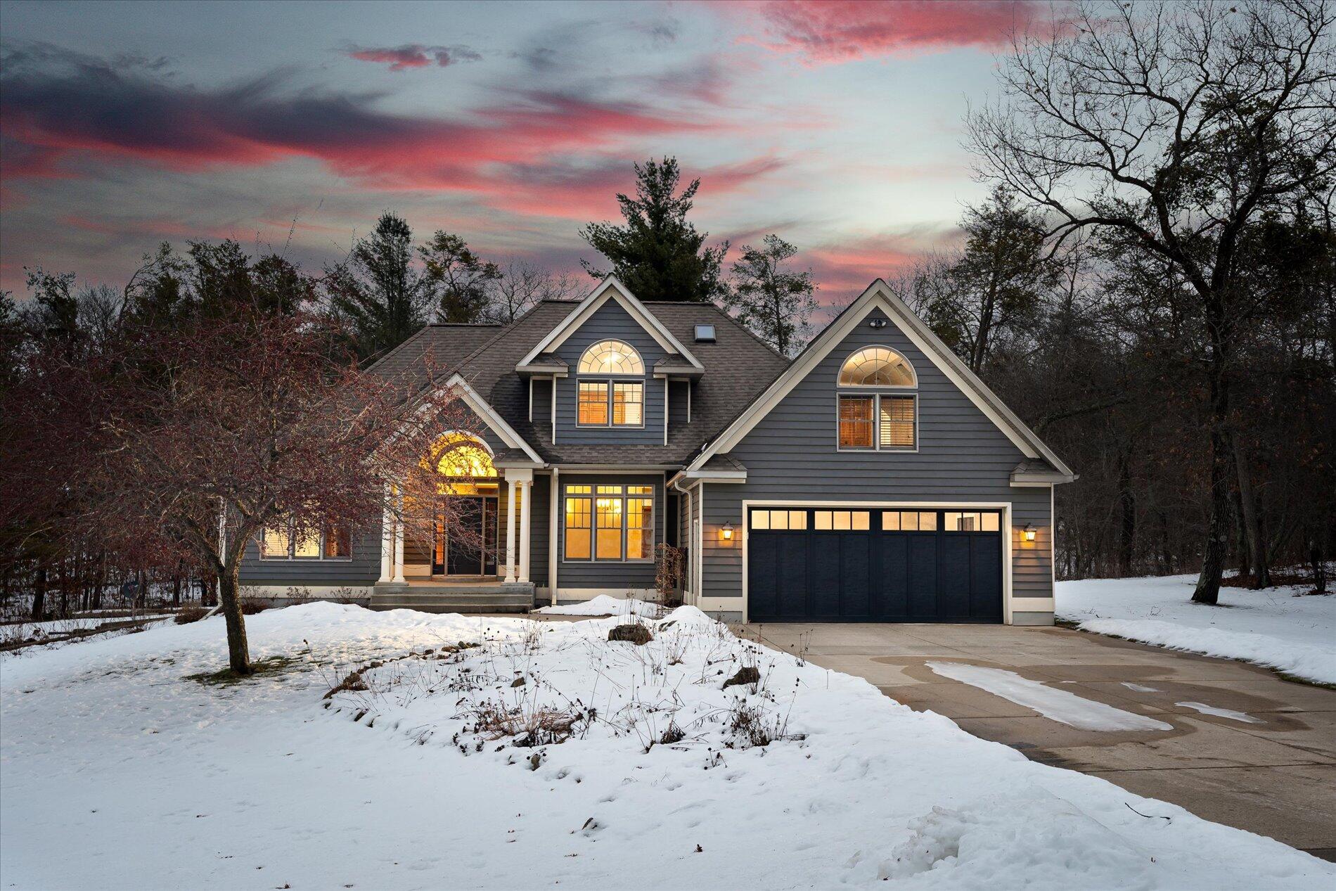 Quality built with several upgrades, this custom home is surrounded by privacy on 1.4 wooded acres. A stone fireplace & vaulted ceilings accent the spacious living rm that overlooks the yard. Eat in kitchen features granite countertops, stainless appliances & island for additional seating. Hardwood floors throughout the formal dining. Main floor primary suite offers two walkin closets & custom tiled walkin shower. Upstairs, three additional bedrooms share an updated full bath with the home's second tiled shower. Finished lower level family, rec rm & den + a walk out to a large patio. Impressive outdoor space includes a large deck w/built in seating & a 12x16 shed. Geothermal heat & a/c for energy efficiency. Stained cedar siding & new roof! Great location-choose Bangor or Sparta Schools.