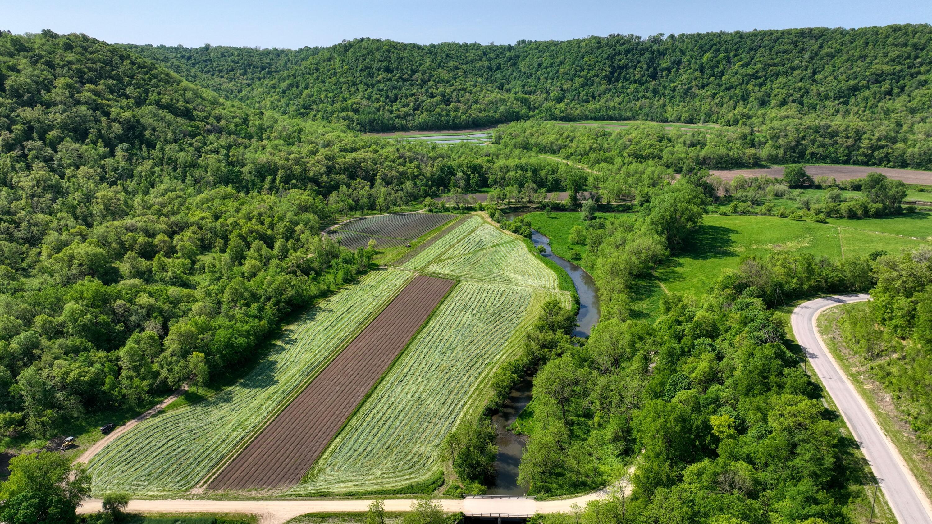 Nestled in the heart of the driftless region, this 161+/- acre property is a stunning example of the natural beauty featuring over 1600' of frontage on the North Fork of the Bad Axe River, a Class I trout stream. Certified organic and lovingly cared for, the land boasts rolling hills, uncountable springs, 28.5+/- acre certified organic tillable, lush meadows, and verdant woods, all teaming with an abundance of wildlife and plant life. With sweeping views of the surrounding landscape, this property offers the perfect opportunity to escape the hustle and bustle of city life and immerse yourself in the wonders of nature.From the moment you set foot on this property, you will be struck by the peace and tranquility that surrounds you.