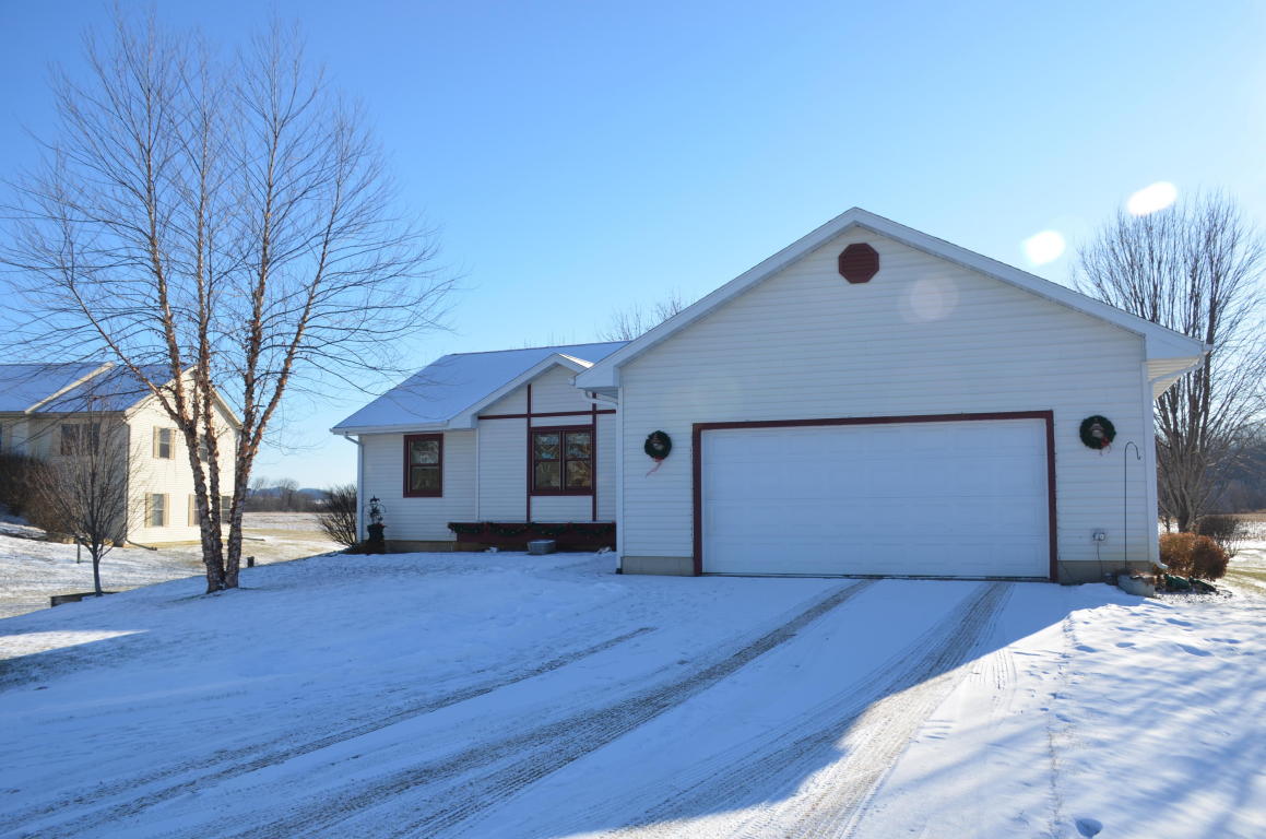 Warm and cozy open concept living space w/ cathedral ceiling and fireplace. Kitchen features large island and maple cabinets. Enjoy beautiful country views from the dining room window or back deck. Master suite w/ walk in closet and bathroom. Option for laundry on main level. Finished lower level w/ egress for potential 4th bedroom. Rec area complimented w/ cedar wall and hickory patterned laminate flooring. Laundry room equipped with storage, folding and drying areas. Hop right on the newly paved bike trail or enjoy the neighborhood park.