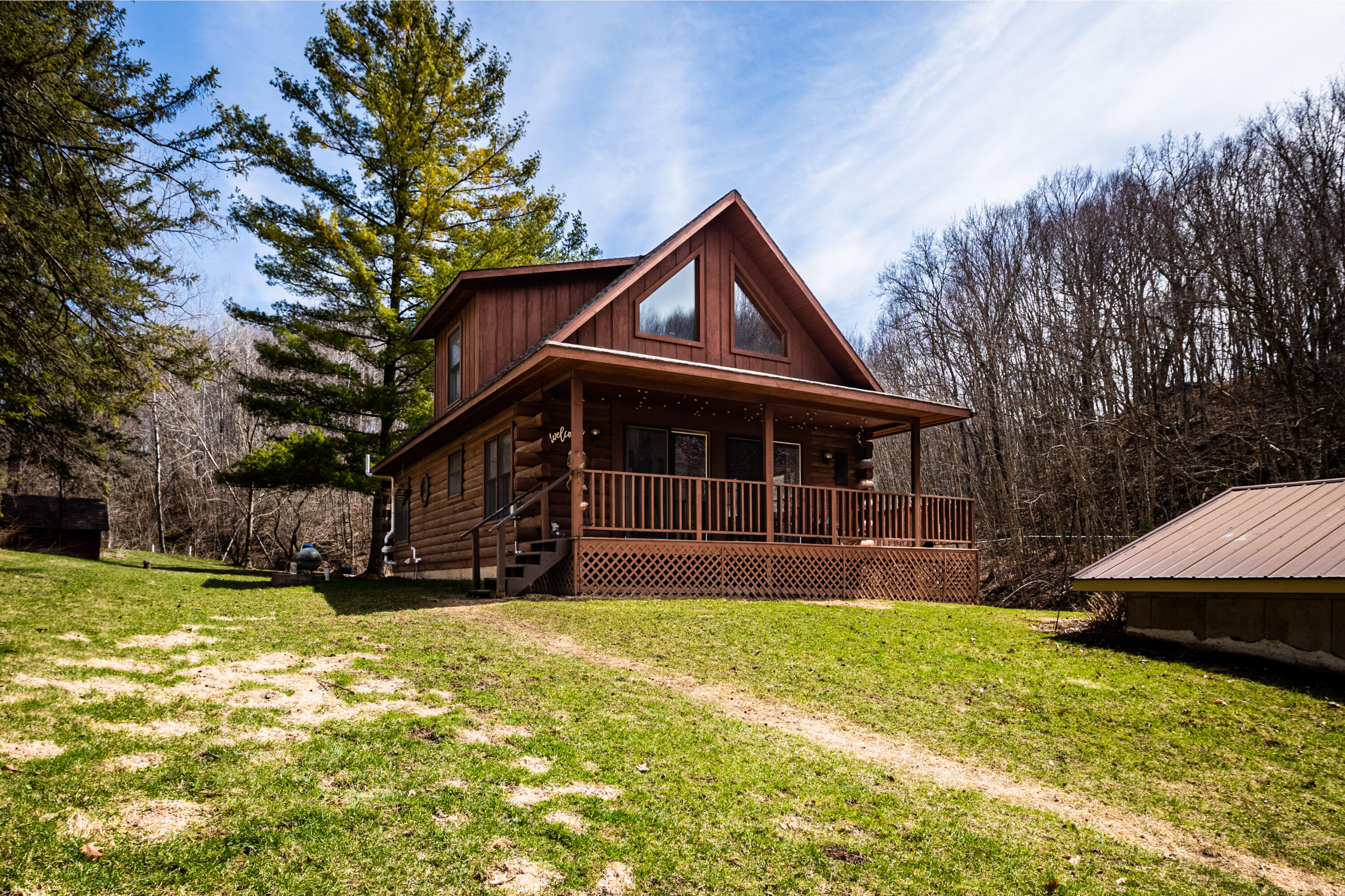 Log cabin retreat and forever home rolled into one. Sitting on nearly 6 acres, this cozy and peaceful log cabin delivers quiet country living while being just minutes from town. Inside you'll find 3 bedrooms, 2 full bathrooms, vaulted ceilings, and beautiful hardwood floors. The walkout basement features a finished family room and a beautifully updated entryway and bathroom. A 2-car detached garage and 30x50 pole shed offers plenty of storage space. Spend your mornings drinking coffee on the wrap-around deck and your evenings relaxing around the fire in the backyard. The land is perfect for hunting, hiking, and is just a short drive from the Kickapoo River for tubing and trout fishing! Don't miss out on your chance to own this piece of paradise!
