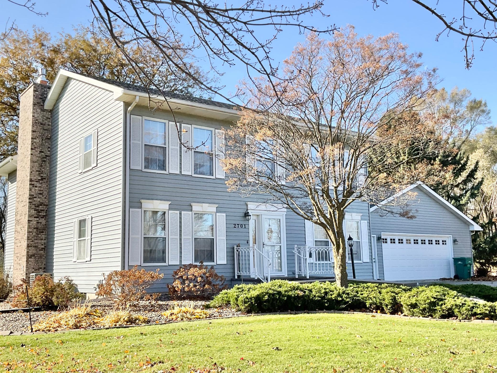 Gorgeous 1.25-acre city setting in quiet, secluded NW neighborhood is home to this fantastic 4BR 3-bath Colonial. Has stunning, spectacular main floor family/great room with gas fireplace, built ins and multiple windows with panoramic views of the lovely, tree lined park like lot and has a huge primary bedroom suite above it with all the same panoramic views. Relax and entertain with both formal and informal dining, comfortable living room, sunroom, main floor laundry and full unfinished poured concrete basement with stub ins for additional bathroom, finishable space galore and storage. Also features an attached, heated 4-stall garage, tiered composite deck, patio, steel siding, two forced air furnaces with central air and a 5-year old roof. Enjoy the lovely landscaping, garden areas, and mature trees of this lovely gem. An additional 1-acre lot is also available.