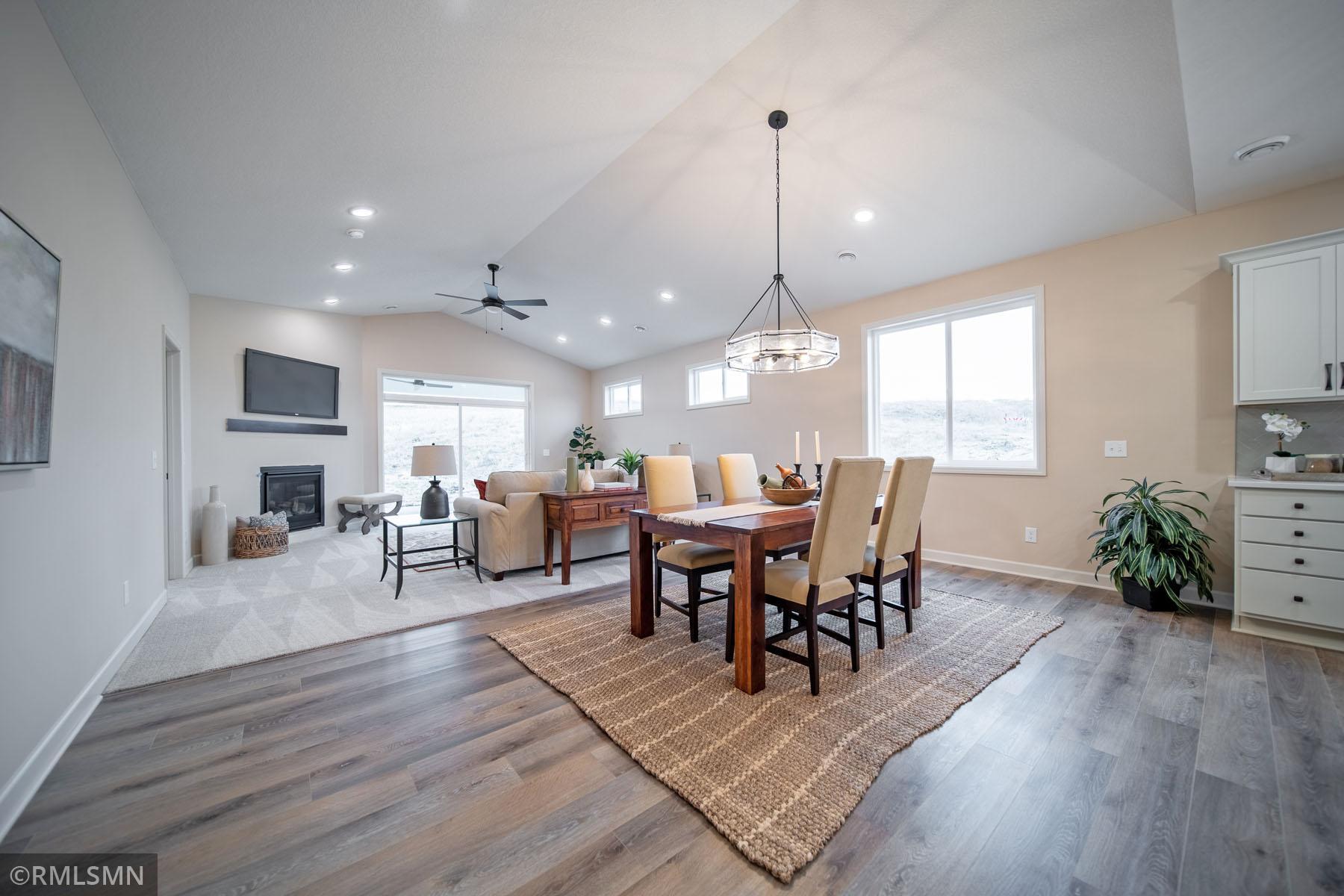 Custom built 3 bedroom, 2 bath, slab on grade! 9' ceilings with vaulted family and dining area. Gas fireplace with stone finish, vinyl plank flooring in entry, kitchen, dining. Spacious kitchen with large corner pantry, stainless appliances, large custom island, kitchen sink window, tile backsplash, granite counters! Covered back concrete patio, front porch, LP smartside elevation, low maintenance exterior, landscaped with irrigation system. Energy efficient design saves money versus a used home of this size. Designed for active lifestyle with age in place features such as wider doors, all living on one level and no steps to get inside the home. This is a perfect long term home!