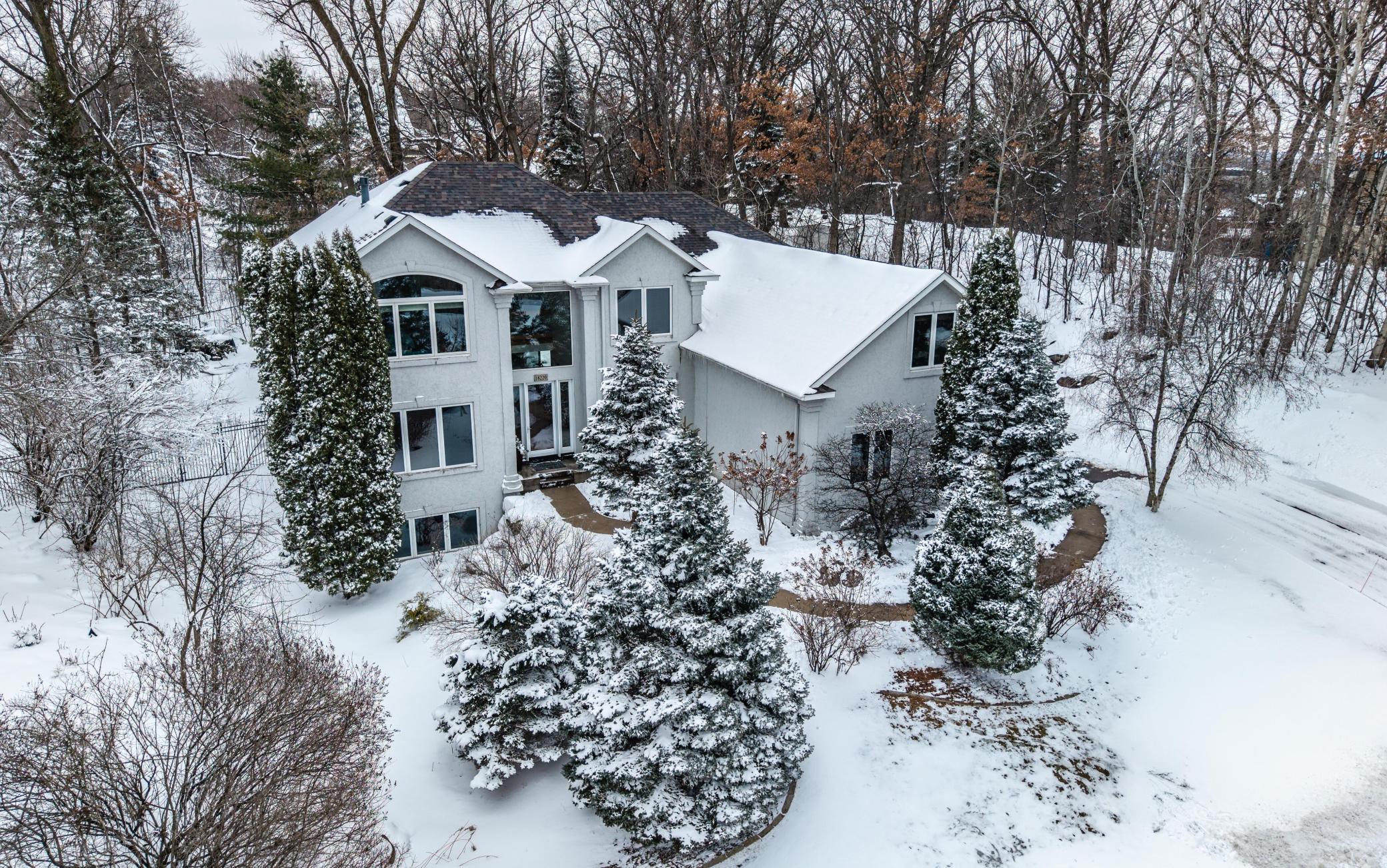 Welcome to this stunning 5-bedroom, 5-bath contemporary home in the highly desirable Raven Lake neighborhood of Lakeville. Offering a 4-car garage and beautifully landscaped, fenced backyard, this light-filled residence blends style and function throughout. Massive windows, rich maple woodwork, and gleaming maple floors create a warm, elegant atmosphere. A welcoming two-story foyer opens to a gracious formal dining room and a handsome main-floor office/den providing the perfect work from home space with a striking two-sided gas fireplace that is shared with the spacious living room. The open kitchen is designed for gathering, featuring a center island with cooktop, double ovens, and a huge window over the sink. Informal dining walks out through triple glass doors to a paver patio—ideal for entertaining. Upstairs, the vaulted primary suite offers a cozy gas fireplace and a luxury bath with a newly tiled shower and flooring. Three additional bedrooms share a full bath and a 3/4 bath. A spectacular 32x11 bonus room with skylights and wet bar adds flexible living space. The lower level boasts a huge family room flowing into a full bar and game area, plus a large fifth bedroom, exercise room, and beautiful 3/4 bath. Located next to Lakeville’s expansive biking and walking path system, this exceptional home truly has it all.