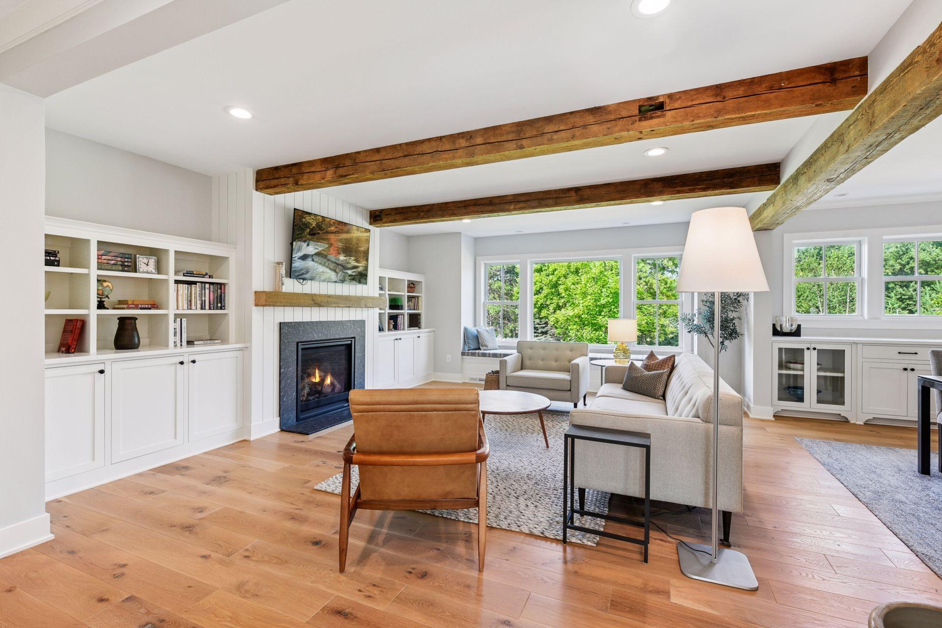 From the moment you step into this Modern Farmhouse, you’ll notice the thoughtful design & exquisite finishes that set this David Charlez Designs home apart. It features built ins galore, beautiful solid white oak floors on both levels, four fireplaces (three indoors) and special touches in every room, from solid wood beams and barnwood accents to wainscoting and shiplap. Nestled on one of Lakeville's most sought-after streets w/ beautiful homes and spacious private lots, you can walk or bike to schools, shopping, restaurants & trails. The chef-inspired kitchen is a true showstopper, featuring custom cabinetry, high-end appliances & a striking blend of quartz & soapstone countertops. A matching butler’s pantry offers generous prep & storage space—perfect for hosting. The open layout flows seamlessly into the dining area w/ custom buffet & a warm, inviting living room centered around a gas fireplace, solid wood beams & a cozy window seat. Retreat to the serene primary suite boasting its own gas fireplace and a spa-like bath complete w/ heated floors, a soaking tub, dual shower heads & a huge walk-in closet w/ custom built-ins. A private main-level laundry room off the large mudroom adds everyday ease & convenience. The lower level is ideal for entertaining w/ a spacious family room with gas fireplace, built-in full-size bar with custom zinc top & a media center for audiophiles. There are also two additional bedrooms sharing a Jack-and-Jill bath, a separate half bath, dedicated office for those who work from home, a flexible bonus room and generous storage. Step outside to an expansive patio w/ beautiful custom-built wood-burning fireplace overlooking the large, flat backyard. The garage features a tandem third stall for bikes, golf carts, bikes or car storage. Every detail has been carefully curated. Schedule your private showing today—homes w/ this level of thoughtfulness, practicality and quality are a rare find!