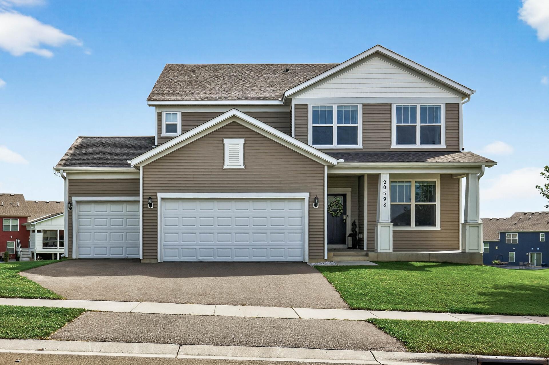 Amazing Lakeville location in a great neighborhood close to tons of restaurants and shopping. Enjoy a cozy covered front porch and an oversized 3-car garage offering plenty of space for vehicles and storage. Inside, you’re welcomed by a beautiful foyer that opens to a beautiful formal dining room. Beyond the foyer, the home flows into a spacious open-concept kitchen and living area perfect for everyday living and entertaining. The chef’s kitchen features double ovens, a separate cooktop, stainless steel appliances, quartz countertops, a butler’s pantry, and a walk-in pantry. The inviting living room showcases a gas-burning fireplace and overlooks the backyard. The main-level flex room offers excellent versatility and could easily be converted into an additional bedroom, with the adjacent half bath providing space to add a shower by utilizing the existing closet area. Upstairs, you’ll find four spacious bedrooms, a large loft, and a laundry room with a utility sink for added convenience. The massive primary suite features two walk-in closets and a private ensuite with double sinks, a water closet, separate shower, and a relaxing soaker tub. The play system in the backyard, Ring camera, and security system are included with the sale of the home; buyers will simply need to establish their own account to continue the security service.