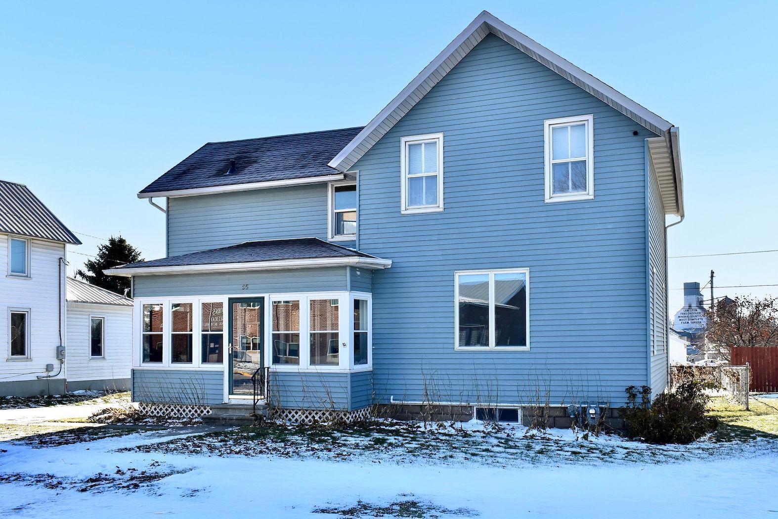 This classic two-story home offers 4 bedrooms and 2 bathrooms, perfectly situated in the heart of town on an oversized city lot with a fenced-in yard. The welcoming front porch sets the tone for the charm inside, featuring a spacious layout with a large dining room, main floor bedroom, and convenient main floor laundry. The primary suite includes a private full bathroom and walk-in closet, providing a comfortable retreat. The partially finished basement offers additional living or storage space with a bonus office, potential family room, and additional flex room. The 600+ sq. ft. two-car garage adds plenty of room for parking and projects. Recent updates bring peace of mind, including a new house roof, AC and furnace, concrete driveway, and several newer appliances. With its blend of character, modern updates, and a great location, this home is move-in ready and full of appeal.