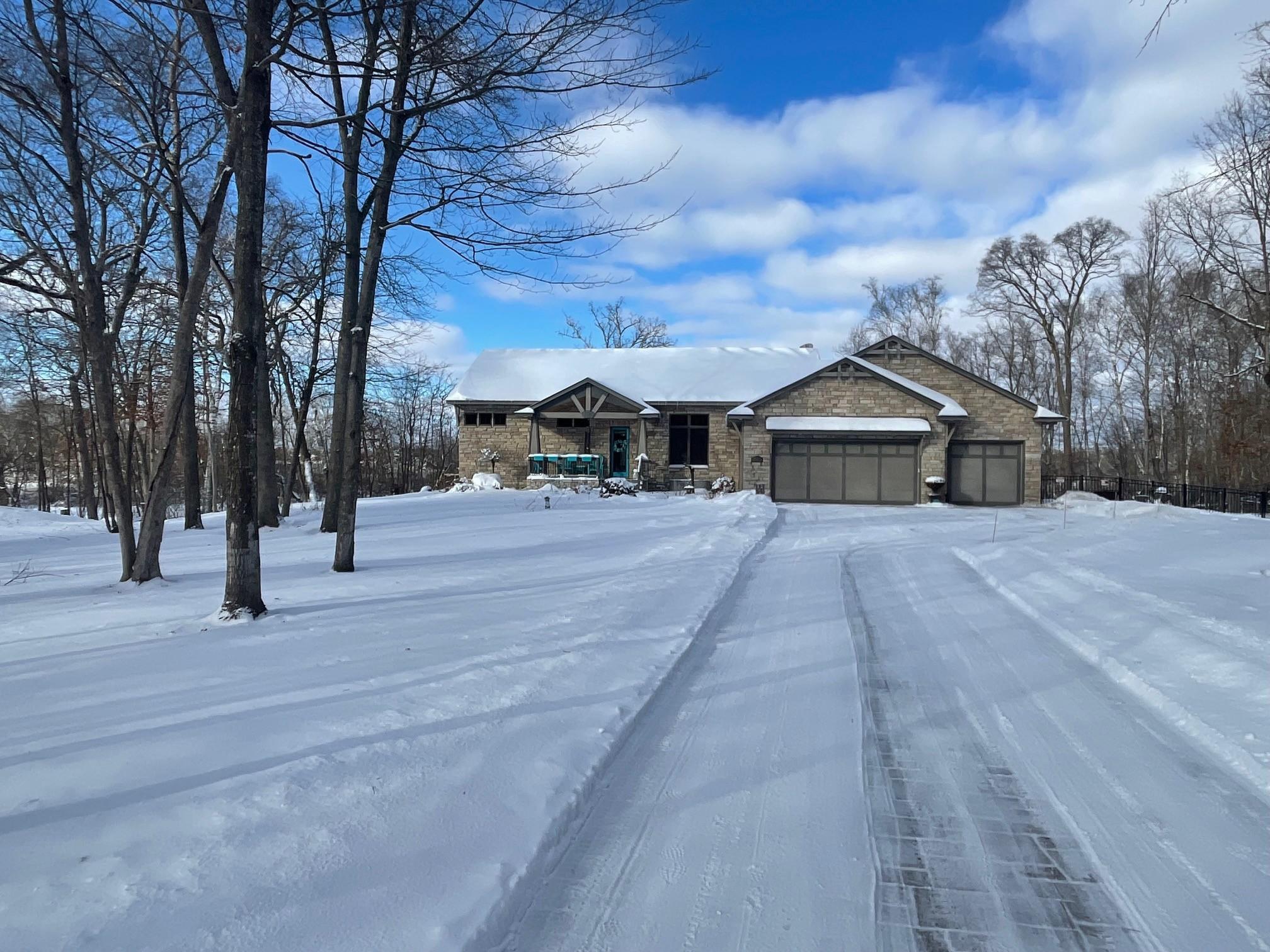 Absolutely Gorgeous Showstopper, 4BRw/4 Full Bath Walkout Rambler on 5 private wooded acres! Why build when you can buy this harmonious blend of luxury, style and tranquility. You will not be disappointed. As you step into this turnkey home, you'll be greeted by the grandeur of 12-foot ceilings, creating an open and inviting atmosphere. Stream your favorite music throughout the main level with the built-in bluetooth stereo system. The expansive great room with 8 foot windows overlooking scenic wetland area, plus beautiful built-in cabinetry w/ gas F/P adds to the ambience of the space. Renovated kitchen with new granite countertops, tiled backsplash, double wall oven, cooktop, newer dishwasher that accent the cherry cabinets, offering both beauty and practicality. Traditional formal dining room with a stunning gold-leaf style ceiling that will have you always looking up! Entire home was recarpeted in 2024. 8-foot cherry doors add to the sense of flow and refinement. Main floor primary bedroom has sitting area with a large full bathroom, jetted tub and recently meticulously retiled large walk-in shower. The walk-in closet connects to the laundry room making it a perfect design. The spacious lower level has in-floor radiant heat updated in 2024 including new boiler. LL family room has a full bar area, electric f/P. and home theater set-up with 5.1 surround sound, ideal for entertaining. The walkout lower level also boasts two additional large ensuites with private baths. Workout room and patio wired for hot tub and TV. Furnace replaced in 2024. Fenced backyard. Perfect set-up for multi-generational living. Last but not least, a heated oversized 3 car garage. All of this nestled on 5 private acres with plenty of room to add an outbuilding on the west half of the lot. Bring the horses and board them down the road at the nearby Equestrian Barn.