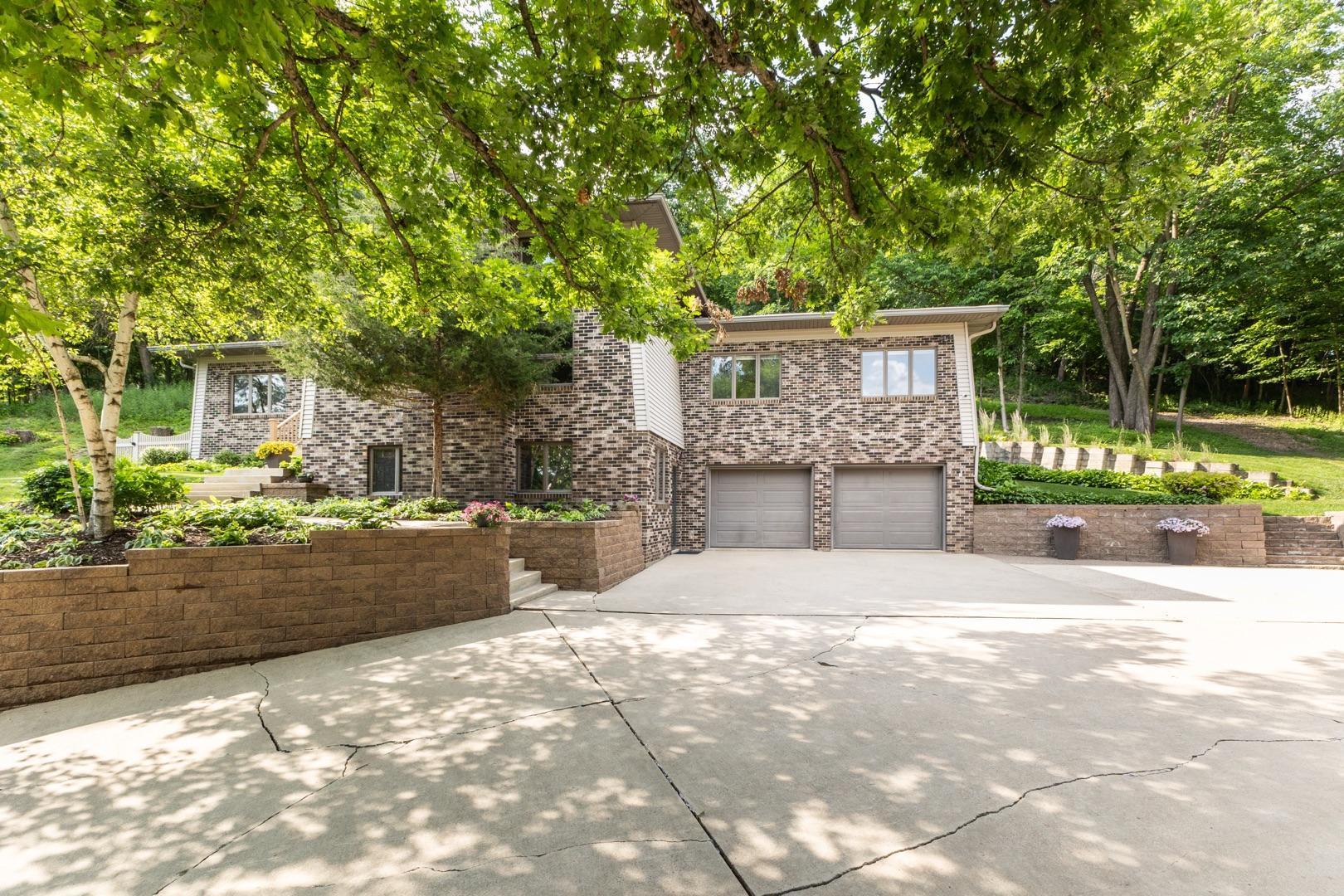This completely updated and meticulously maintained raised rambler is situated on 2 partially wooded acres just minutes from downtown. The home's clean, contemporary lines are warmed by floor to ceiling windows, skylights and picturesque views. A neutral palette throughout both levels display beautiful laminate, tile, LVP flooring and warm cabinetry. Three newly remodeled bathrooms boast porcelain tile and stone finishes. Large master bedroom on the west wing and 3 additional bedrooms on the east wing offer space and privacy. The scenic backyard oasis is a sanctuary that you will never want to leave! The property also features newly redone retaining wall, offering long-term support and refreshed curb appeal. Don't miss the custom built 30x36 detached structure accessed by a separate driveway. This space may be used for a workshop or hobby enthusiast as it features large windows, multiple 110 and 220 volt outlets, a range of 20-40 amps, several wall cabinets and 20.5 foot counterspace with built-in lower cabinets. This building has superior insulation and a natural gas heater. Beneath is a second garage providing space for vehicles or recreational equipment. It is heated with water access. Built with high quality materials including steel siding and brick-designed for functionality and style.