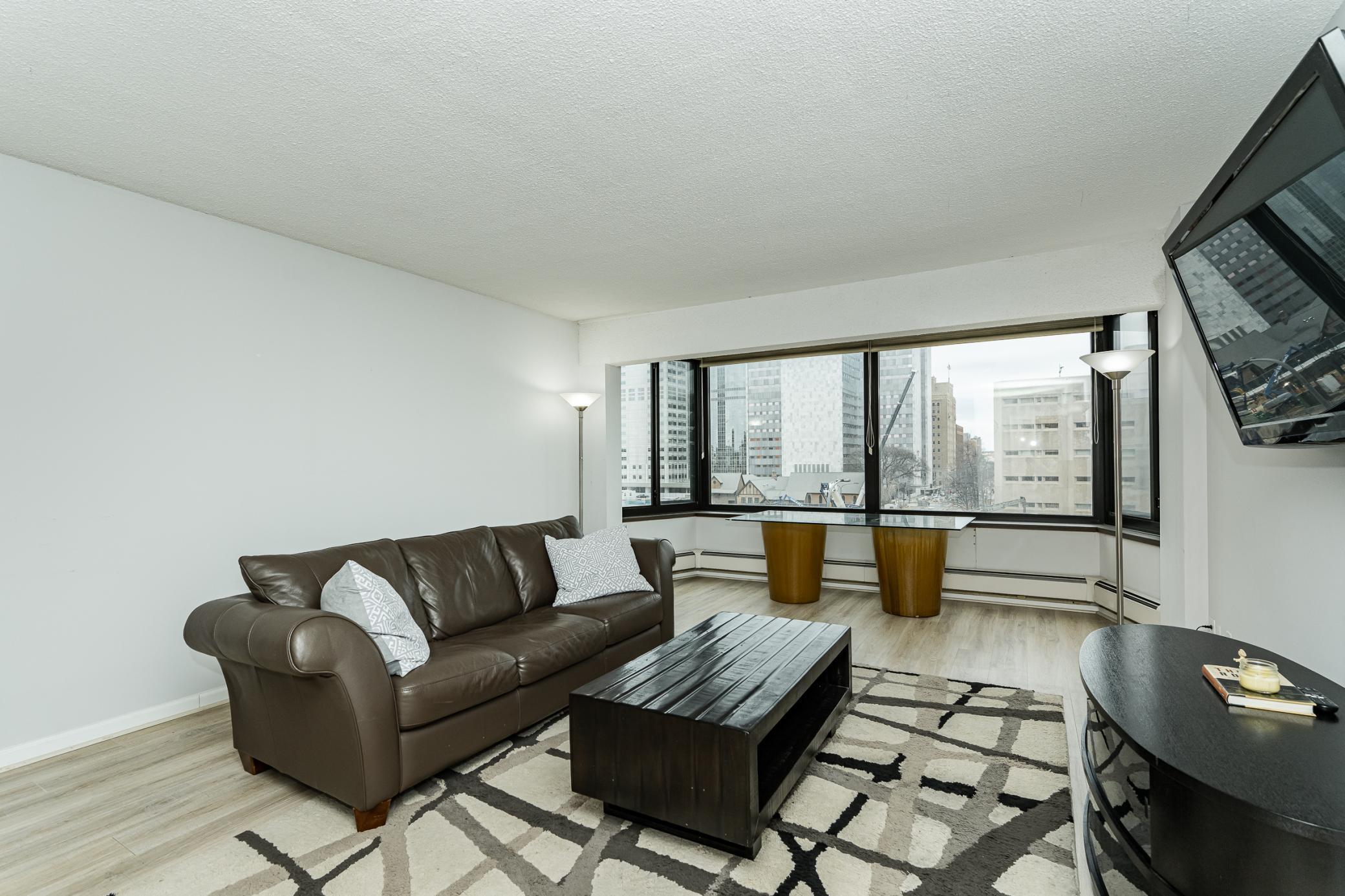 Walking distance to Mayo, 2-bed, 2-bath condo offering a fantastic low-maintenance lifestyle. A corner unit means more windows with natural light! You'll love the updated kitchen featuring granite countertops and soft-close cabinets, and the open living areas with laminate flooring. Bedrooms are generously sized and include plenty of closet space. Any furniture can stay, making this an instant investment opportunity. The community amenities are excellent, including an indoor heated pool, exercise room, patio with grill, library, kitchenette, and convenient on-site laundry. You'll also appreciate the underground heated garage with an assigned parking spot conveniently located near the elevator. The HOA covers all utilities except electricity. The location is ideal, providing easy access to everything downtown has to offer, such as restaurants, shopping, the clinic, and the subway system. The seller is willing to pay off the unit's assessed loan amount, and the listed HOA reflects that.