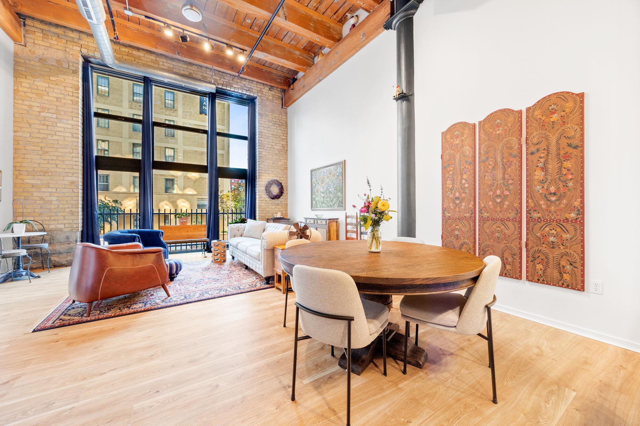 Step into one of Saint Paul’s most striking condos—where historic character meets modern luxury. This beautifully renovated 2-bedroom, 2-bath home not only showcases nearly 18-foot ceilings, oversized windows that flood the space with natural light, and authentic exposed brick and timber beams—it also includes two heated, secure parking spots in one of the best garage locations in the building, a rare find in downtown Saint Paul. Thoughtfully updated with over $47K in high-end improvements, this home perfectly blends timeless charm with modern comfort. The kitchen is a true showpiece, featuring a Thermador gas range, Bosch refrigerator and dishwasher, Cambria countertops, and artisan hardware. Both bathrooms have been fully remodeled with elegant vanities, designer lighting, upgraded fixtures, and stylish flooring, while luxury vinyl plank flows seamlessly throughout the main level. Additional highlights include in-unit laundry and a spacious private storage room, offering everyday convenience. Set in a well-managed, pet-friendly, and community-focused building in Lowertown, this home provides unmatched access to Mears Park, CHS Field, the Farmer’s Market, the river, and Saint Paul’s best dining and entertainment. This is more than a condo—it’s a rare opportunity to own a piece of Saint Paul history, beautifully reimagined for modern living.
