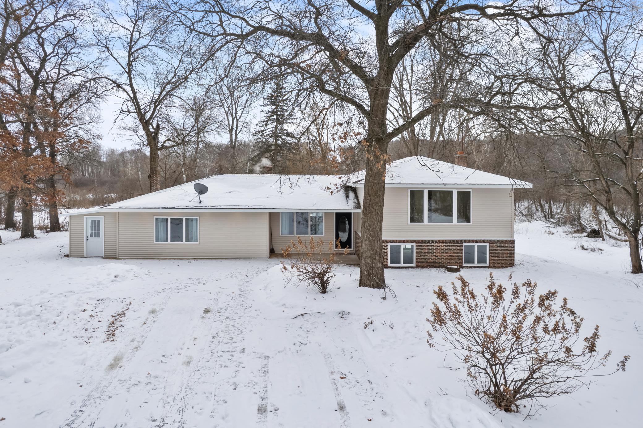 Nicely updated 3 level home on 12 private acres with a huge outbuilding! The spacious main level has a kitchen, dining room, huge living room, office, laundry room and 3 season porch! The upper level has 2 large bedrooms (the primary has a huge walk-in closet) and full bathroom! The lower level has 2 bedrooms, walk-out family room with wood fireplace, crawl space storage and 3/4 bathroom. Updates include: new septic mound system, all new windows, brand new boiler, siding, attic insulation, aluminum soffit & facia, lights, new kitchen with all new stainless steel appliances and granite counters, fresh paint throughout, new floor coverings and updated bathrooms! The 90 x 40 ft pole building has a 28 x 26 garage with concrete floor and new (smart) garage door adjacent to a 26 x 12 separate office space. The back 2/3 of the pole building has a dirt floor and large sliding door to the backyard. The possibilities are endless - horses, hobby farm, mechanic, wood shop, home business, etc.! A must see!!
