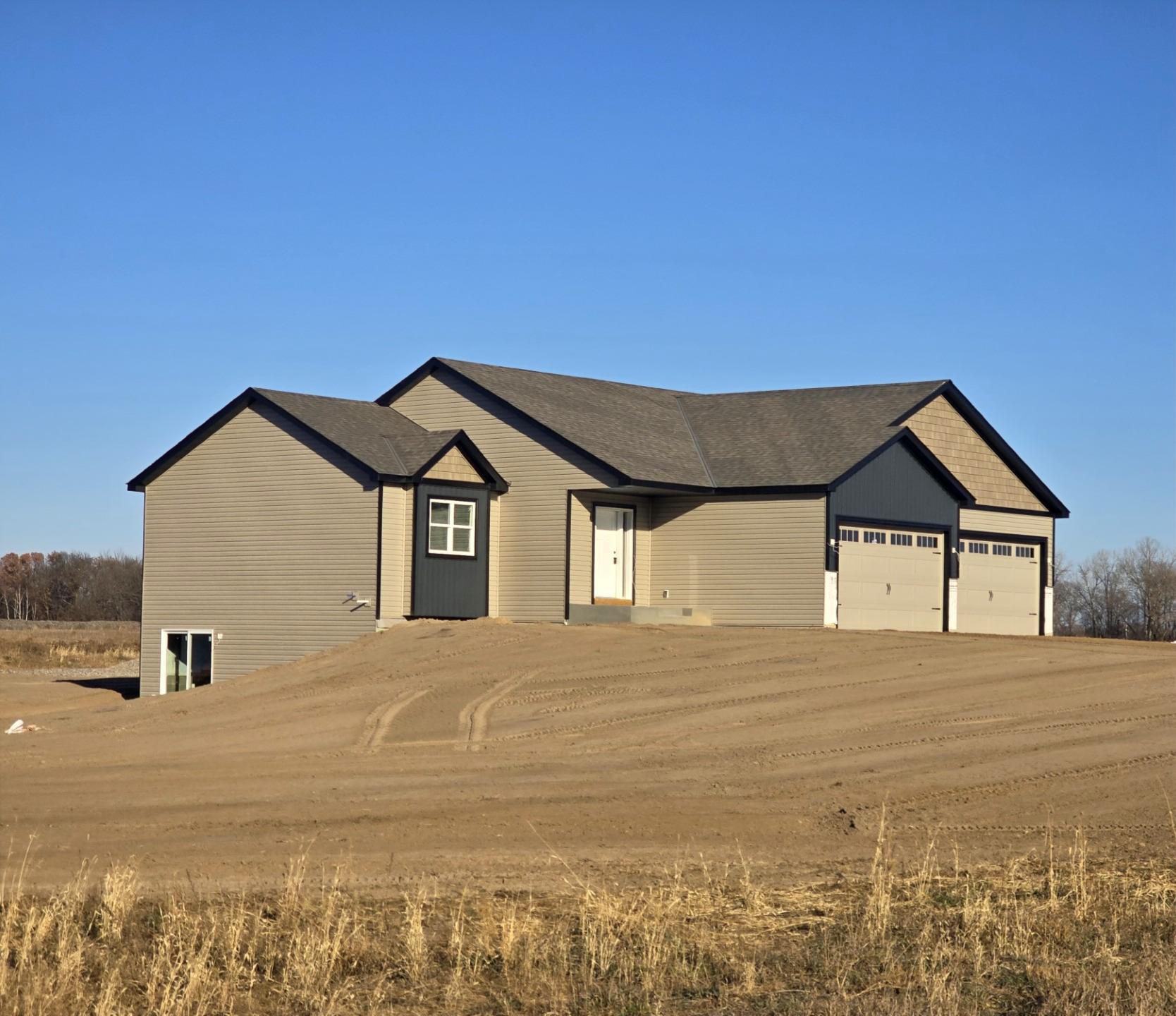 Beautiful new walkout rambler on 3 wonderful acres, spacious open floor plan, 3 bdrm, 2 bath, vaulted ceilings, wood rails, knotty alder cabinets throughout. All SS appliances included, Almost 1300 Sq Ft finished with another 1300 Sq Ft ready to finish in the walkout lower level. 4 car garage. Will be 100% complete in a couple weeks. Inside pics are of duplicate model.
