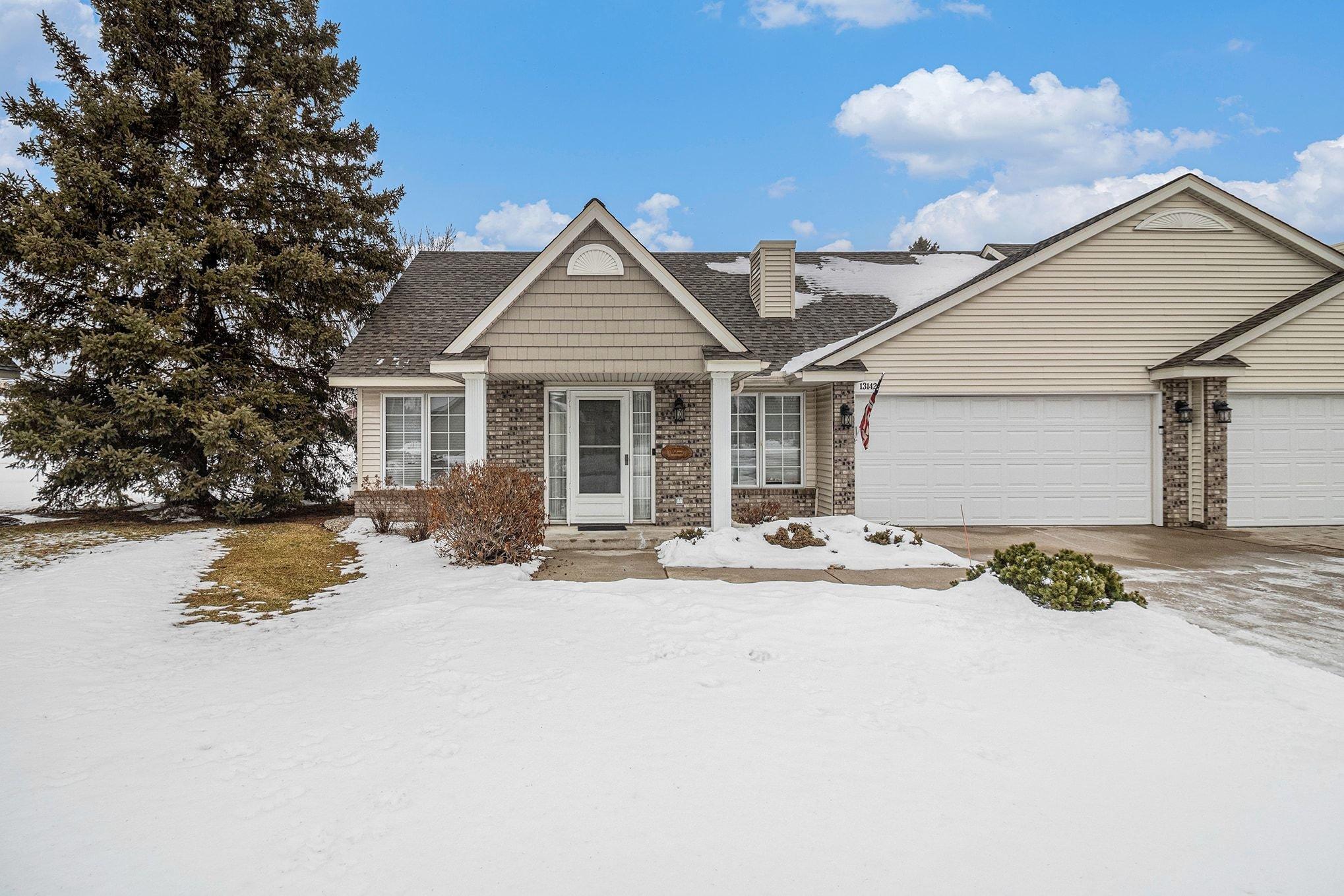 Google Maps does not take you to the correct location. Follow directions in listing! One-level townhome offers all living facilities on one level, including two bedrooms, main-floor laundry, and an attached two-car garage, making life here convenient and accessible. The functional floor plan includes vaulted ceilings, a gas fireplace, and a sunroom. A private patio offers outdoor space without the responsibility of yard work. The roof was recently replaced by the association. Conveniently located just minutes from Riverdale shopping, restaurants, and major road access, this home is close to everyday amenities while offering a quiet cul-de-sac neighborhood.