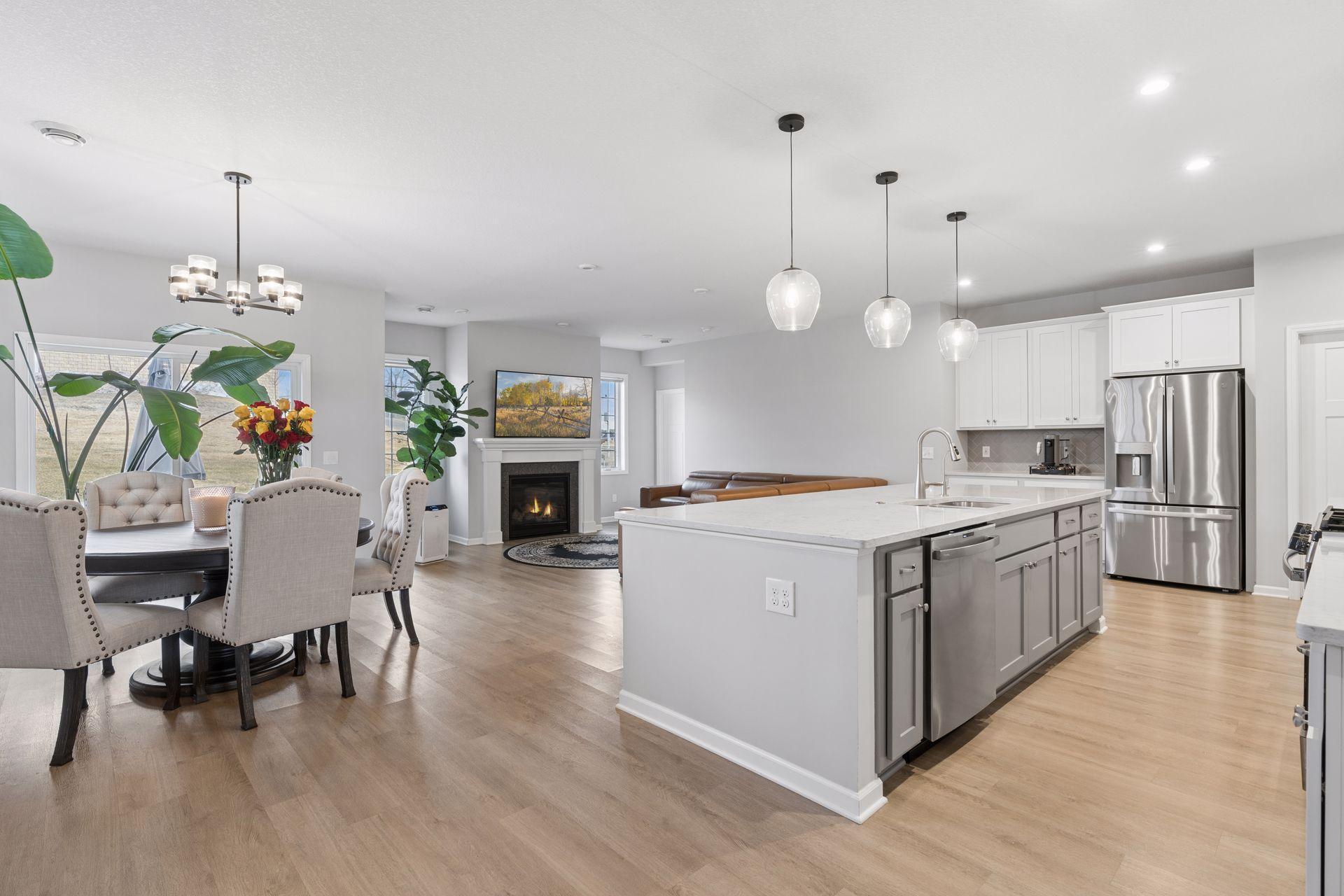 Stunning 2022-built Hans Hagen “Magnolia Plan A” villa, thoughtfully designed for spacious main-level living and beautifully curated with designer-selected finishes throughout. The open-concept layout creates an inviting and elegant atmosphere, perfect for both everyday living and entertaining. At the heart of the home is a breathtaking chef’s kitchen that seamlessly connects to the dining and family rooms—creating the ultimate gathering space for family and friends. The kitchen showcases an oversized center island, abundant white cabinetry, elegant marble countertops, stainless steel appliances, a generous walk-in pantry, and a dedicated coffee nook that adds both charm and functionality. The main level offers convenient living with generous living spaces, while the upper level expands your options with a large loft—perfect for a media room, office, or play space—along with two spacious bedrooms and a full bath. Additional highlights include a rare three-car garage, providing ample room for vehicles, storage, and hobbies. Enjoy truly carefree living with association-maintained lawn care, snow removal, and trash service—giving you more time to relax and enjoy your beautiful surroundings. Located in a highly desirable luxury neighborhood that is rapidly becoming one of the most sought-after communities in the Twin Cities, this home offers unbeatable convenience just minutes from shopping, dining, scenic parks and trails, and two exceptional golf courses. Modern design, low-maintenance living, and an incredible location—this home truly has it all.