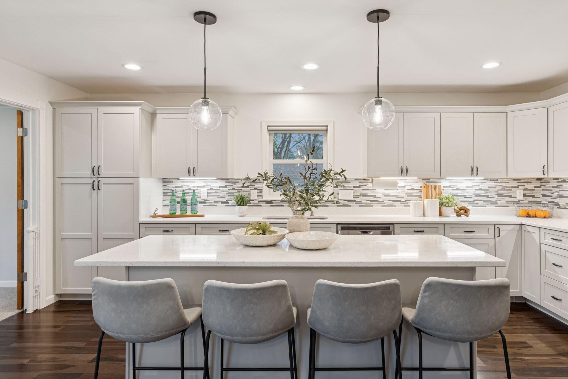 Gorgeous Remodel on a beautiful oversized .5+ acre lot! Amazing location that is walking distance to Eden Prairie High School, parks, trails, shopping and dining. Every inch of this home has been thoughtfully updated. Walk in to an oversized entry with ample storage, updated modern railings and new flooring. Enjoy the open-concept kitchen with soft-close cabinetry, quartz countertops, oversized island with extra storage, tile backsplash and stainless steel appliances. The bright four-season sunroom provides the perfect flexible living and entertaining space, off the kitchen and dining area, with a cozy fireplace. The upper level also features a spacious primary suite with a walk-in closet, custom shelving and private en-suite bath. Other updates include full bathroom remodels with high end finishes, all updated fixtures, stunning brazilian hardwood floors, all new windows (2022), new water heater, new furnace, finished garage with a gas line for a future heater install and epoxy floor. This is the home you have been waiting for!