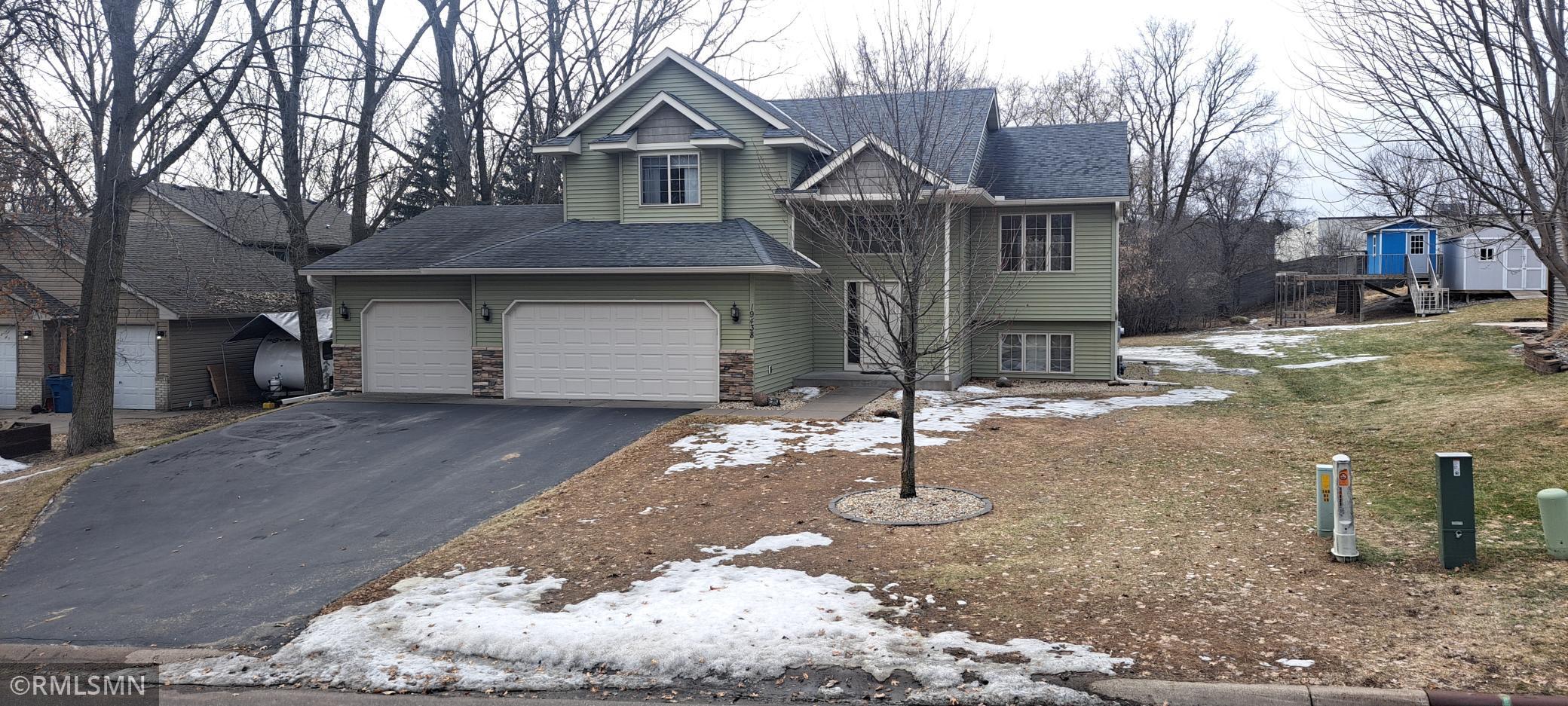 You won't want to miss this home featuring an open floor plan and wide open lower level to finish how you choose! Main level has a spacious living room, dining area and kitchen. Lots of nice cabinetry and counterspace. Both bedrooms feature walk-in closets. Big back yard and no houses behind. Do you have a boat? The 3rd stall of the garage is 31 ft. deep for easy storage or a workshop area. Floor truss construction allows you to lay out the lower level easier and with more design choices. Plenty of room for 2 more bedrooms, a family room and another bathroom (plumbing is roughed in). Relax on your brand new cedar deck and enjoy the privacy many trees provide. Plenty of room for a garden, playsets and all your outdoor hobbies. Shopping including Coborn's and Menards and good restaurants nearby, too!