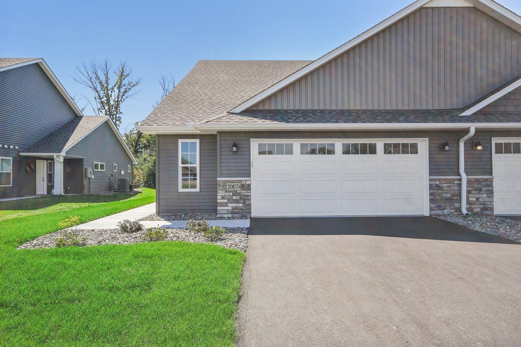 This is the very last unit available in the Head Waters Place in Forest Lake! Get it while it lasts! Enjoy convenient main level living in this brand new, slab on grade townhome, built with quality and comfort in mind. The open floor plan features vaulted ceilings and a spacious layout that includes a large kitchen, dining area, and living room. The kitchen comes fully equipped with custom cabinets, granite countertops, a tile backsplash, stainless steel appliances, a walk in pantry, and a huge center island. The living room includes a gas fireplace and built in cabinets for added storage and style. Just off the main space is a sunroom filled with natural light and a walk out to a concrete patio. The primary suite includes a large bedroom, a private bathroom with a walk in shower, soaking tub, double vanity, and a walk in closet with built in shelving. A second bedroom and full bathroom are located at the front of the home, along with a spacious laundry room for added convenience. Each unit also includes a 28x26 insulated garage with insulated garage doors—perfect for extra storage, tools, or recreational gear. Loads of quality finishes such as Andersen windows, granite counters throughout, and durable, high grade flooring. Schedule your showing TODAY!