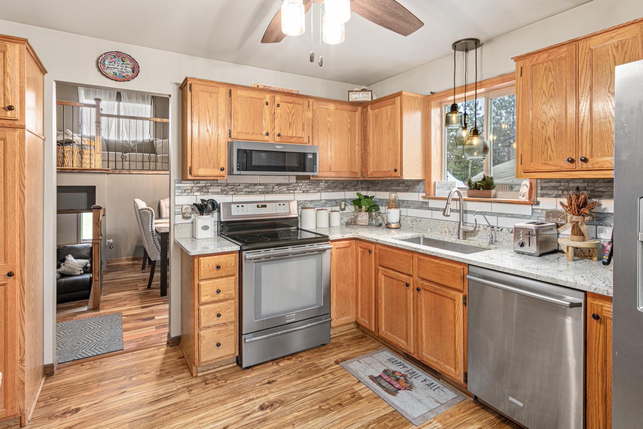 Welcome to this well maintained home in a quiet Forest Lake neighborhood just blocks from a public boat launch. Enjoy easy access to the lake while still being close to town amenities. Inside, the home features Acacia wood floors, Pella windows with UV protection, updated lighting and ceiling fans, and several interior doors replaced with six-panel designs. The layout offers comfortable living spaces that work well for everyday living and entertaining. Step outside to a spacious 24x12 deck, ideal for grilling or relaxing. The insulated, heated garage provides great year-round functionality for storage, hobbies, or additional workspace. Additional highlights include a newer AC unit and thoughtful updates throughout. With its proximity to the lake and solid improvements already completed, this home offers both comfort and convenience in Forest Lake.