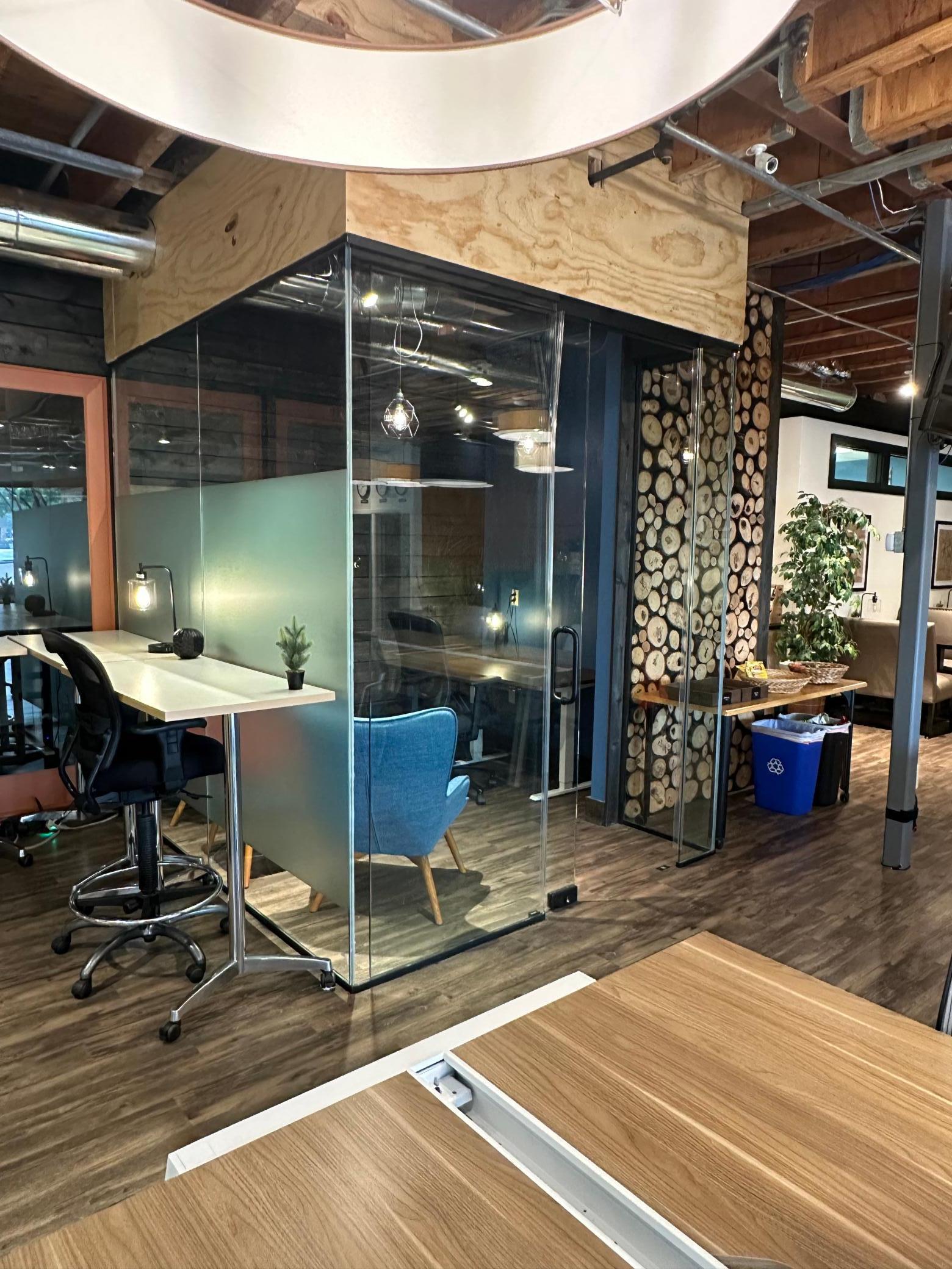 Private office available within a modern co-working space in Hopkins. Enjoy a quiet, well-designed workspace with access to shared amenities including a kitchenette, coffee machine, and Bi-weekly free lunch Fridays. Convenient location with a creative atmosphere and nearby shops and restaurants.