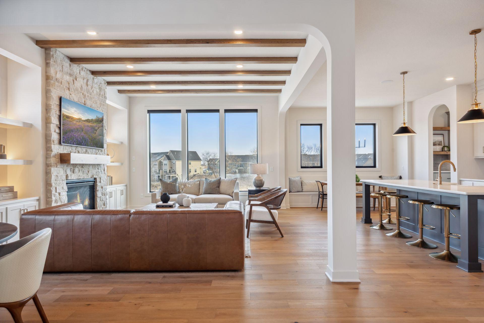 Hanson Builders Bridgewater Sport! 10' Ceilings on the main level with oversized windows. Custom designed kitchen with large Prep Kitchen overlooking the backyard! The upper level features a vaulted Bonus Room, 4 Bedrooms, including private Owner's Suite with spa-like bathroom and walk through to Laundry. Finished lower level with Indoor Sport Center, family room, wet Bar/games area and 5th bedroom. Nestled on a private cul-de-sac with wetland views and Mahtomedi schools! We have perfected our building process for over 45 years and would be honored to share our secrets with you! Our years of experience gives you the peace of mind you deserve!!