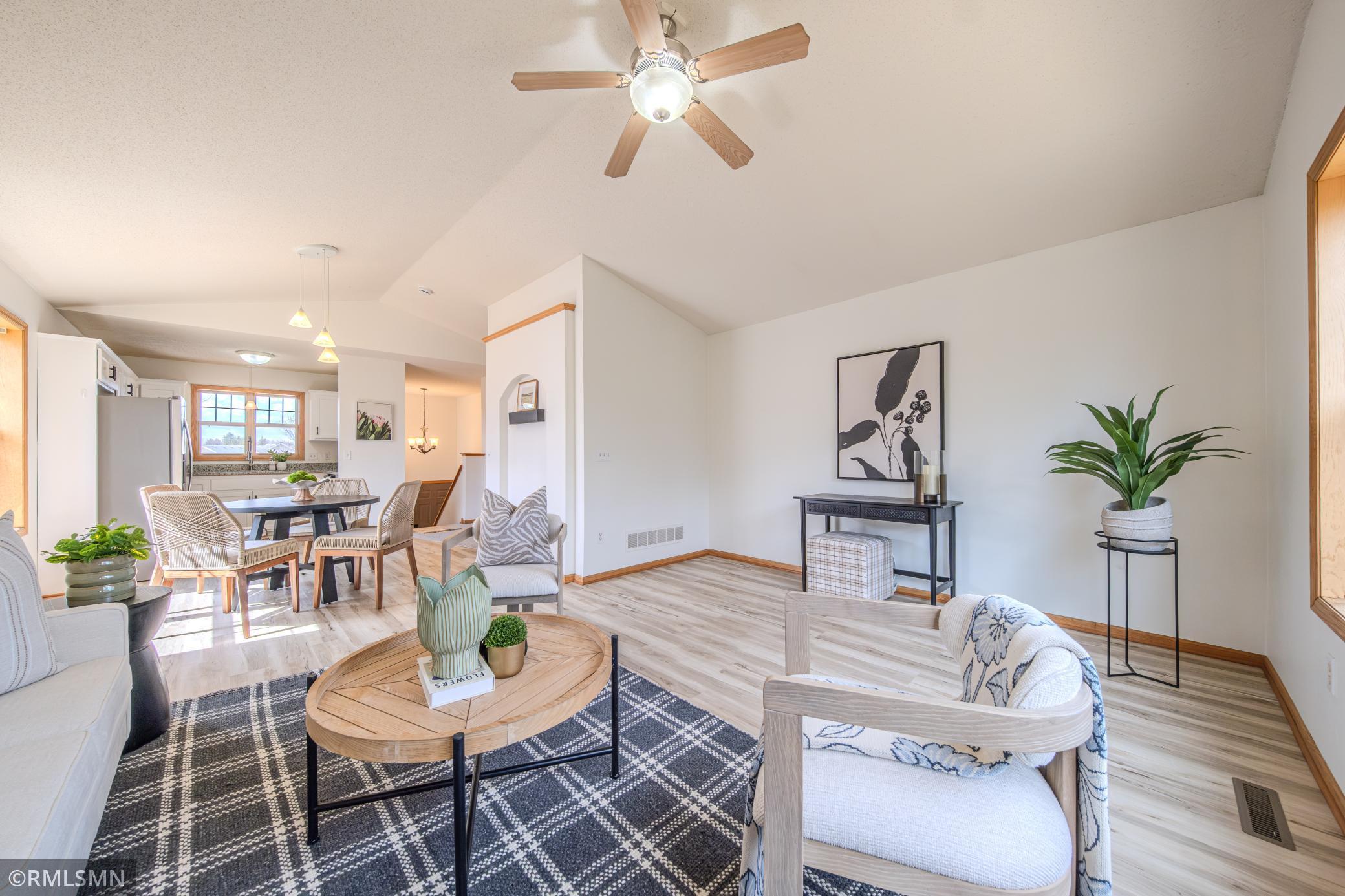 ***ASSUMABLE LOAN AT 3.5%!! ASK LISTING AGENT FOR MORE INFORMATION!*** Welcome to this newly renovated home, a true gem that encompasses modern elegance and convenience! This spacious property boasts 4 bedrooms and 2 bathrooms, a spacious upper living room and lower family room that displays a beautiful stone fireplace, making it an ideal choice for families seeking comfort and style. As you step inside, you'll be greeted by the stunning new luxury vinyl plank flooring that flows seamlessly through the upper main living area, while plush carpet adorns the upper and lower levels, adding a cozy touch. Freshly painted walls enhance the bright and airy atmosphere throughout the home. The redesigned kitchen features all white cabinets complemented by new hardware and a single bowl sink. The beautiful granite countertops provide ample space for meal preparation, and the stainless-steel appliances offer both functionality and a sleek aesthetic. Both bathrooms have been upgraded to exude a sense of luxury. Elegant quartz countertops and marble tiling create a sophisticated ambiance. This home is a perfect blend of contemporary design and practical living, ready to welcome its new owners! Don't miss the opportunity to make this exquisite property your own! HOA covers lawncare, snow removal, and sanitation, which is extremely convenient! Nearby County Rd 5, minutes from Rum River, Legacy Park with walking paths, picnic areas and schools for all ages! HOA required.