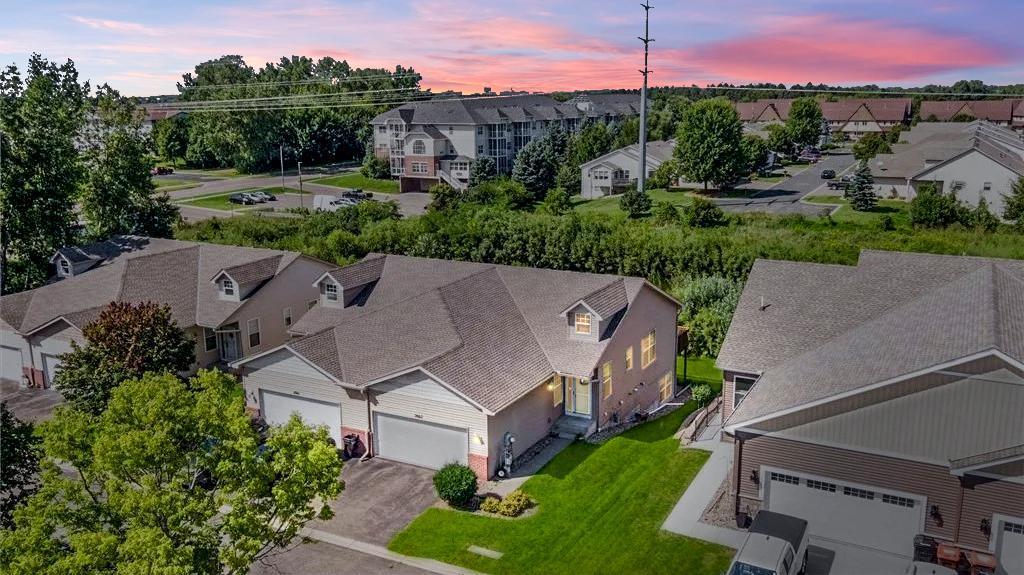 Discover the perfect blend of style, comfort, and convenience in this beautifully updated end-unit walkout rambler townhome. Ideally located just minutes from shopping, dining, coffee, groceries, and major roadways, this home makes everyday living effortless. Inside, the updated kitchen shines with granite countertops, tile backsplash, abundant cabinetry, and a center island for casual dining. The open floor plan flows into a spacious living room with sliding doors to your private deck—where peaceful pond and Bruentrup Heritage Farm views provide the perfect backdrop. Enjoy true one-level living with the primary suite (featuring a walk-in closet and full bath), laundry, second bedroom, and attached two-car garage all on the main floor. The finished walkout lower level offers a bright family room, game area, third bedroom, updated ¾ bath, and patio access to green space—ideal for relaxing or entertaining. You’ll love: -End-unit privacy & extra windows -Main-level laundry—no stairs for chores! -Tasteful updates & move-in ready condition -Low-maintenance living in a prime location. With scenic views, abundant natural light, and a thoughtful layout, this home is a rare find—schedule your showing today!