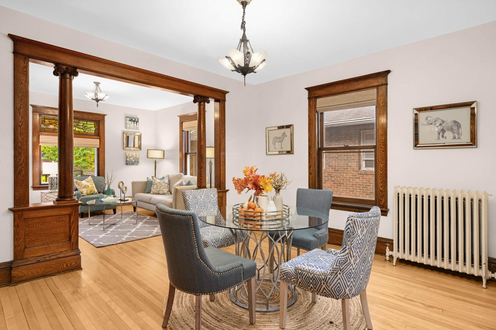 Welcome to 2100 Garfield! This bright and beautifully updated unit blends historic charm with modern convenience. Featuring natural woodwork, built-ins, and a thoughtfully upgraded kitchen and bath with marble flooring, the property offers in-building laundry, a relaxing sauna, and a versatile mudroom. Enjoy both a front deck and a private back patio - perfect for entertaining or unwinding. Additional highlights include an attached garage, Peloton treadmill, custom closet system in both bedrooms, a newly installed smart home lighting system, and a new sewer line (2024). Located in a well-managed, owner-occupied building within walking distance to Lake of the Isles, this property offers easy access to I-94, restaurants, shopping, and entertainment. Come check it out!
