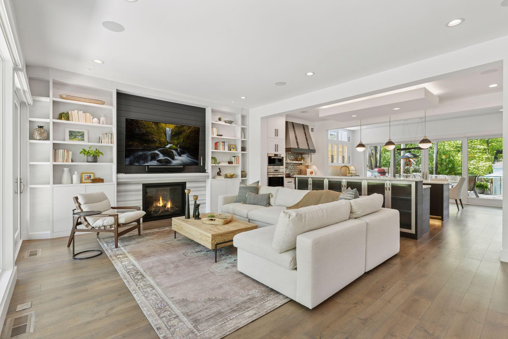 This incredible four bedroom/four bath contemporary home overlooking Beard's Plaisance & Lake Harriet is a perfect condo alternative, with an ELEVATOR providing access to every floor. Come live in the heart of Linden Hills, just a short walk to dozens of shops and restaurants. Huge floor-to-ceiling windows throughout create a luxurious treehouse feeling, and sunrises over the lake from the primary suite and main floor living areas are incredible all year round. This award-winning home has been exquisitely remodeled from top to bottom, inside and out, with every detail considered. Chef's kitchen includes huge quartz countertops, top of the line appliances, custom hood vent, coffee bar, informal eating area, and more. Main floor boasts open concept living/kitchen area with fireplace, separate sunroom with fireplace, private office, powder room, and formal dining area, currently used as additional sitting room overlooking the park and Lake Harriet. Motorized window coverings featured throughout the entire home. The smart lighting system highlights the custom lighting and accentuates the sleek modern design. FOUR inviting outdoor spaces include a large private deck and patio in back off the kitchen and sunroom with outdoor kitchen, perfect for family get-togethers or a peaceful morning coffee in a tranquil setting. Additional outdoor spaces are in the front off the main living room, a private balcony off the primary suite, and a huge bonus deck off an upper-level guest suite. There are two laundry room areas-one by the upper-floor bedrooms and one in the lower level by the fourth bedroom and 3/4 bath, creating the perfect space for an au pair. The attached 3-car garage is heated with custom cabinetry, plenty of storage, high-end refrigerator and sink, epoxy floors, drainage, and water hookup. The home features an irrigation system, and over $40,000 of professional landscaping was recently installed. This incredible property is perfect for entertaining, whether you have a growing family, are looking to age in place, or looking for luxurious main level living options, this property caters to all of your needs in a beautiful setting overlooking open space and Lake Harriet. Must see in person to truly appreciate this home, it is a piece of art in and of itself. See supplements for floor plans and virtual tour.