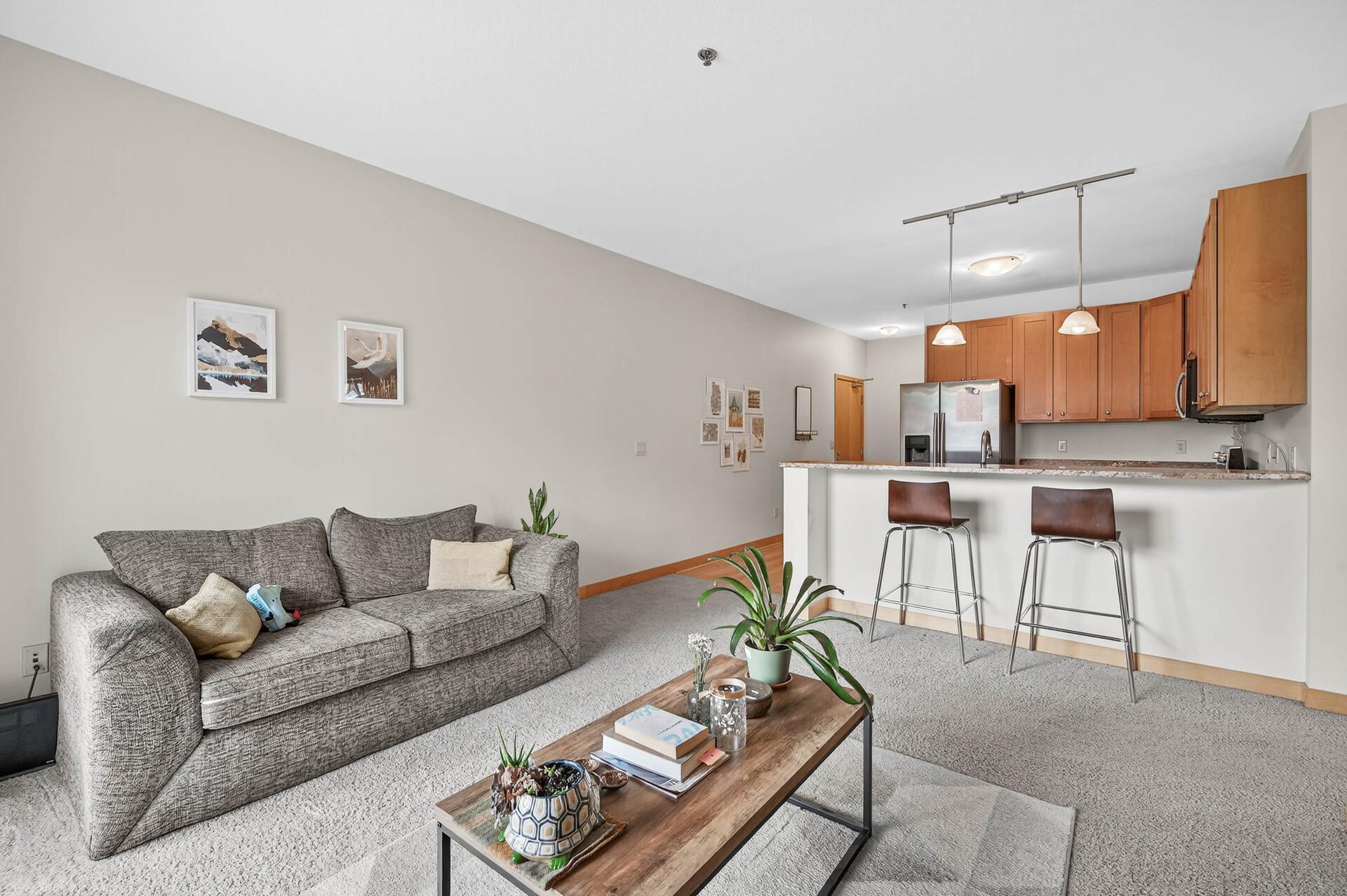 Location, Location, Location! This condo is a CORNER UNIT so NO neighbors to the east side. Primary bedroom has tons of window light with it's own ensuite primary bathroom. Huge open concept kitchen. New kitchen flooring. In-unit laundry. Covered balcony/deck to walk outside and get fresh air - facing rear of building away from street noise. Located in Prospect Park and 1 block away from light rail access. Short walk to University of MN. Just blocks from the U of M Stadium, Mississippi River Trails, restaurants, Fresh Thyme Grocery store across street, and Surly Brewing nearby. Building offers a community room and fitness center. This unit comes with 1 underground parking spot. HOA fee COVERS Water/Sewer bill!