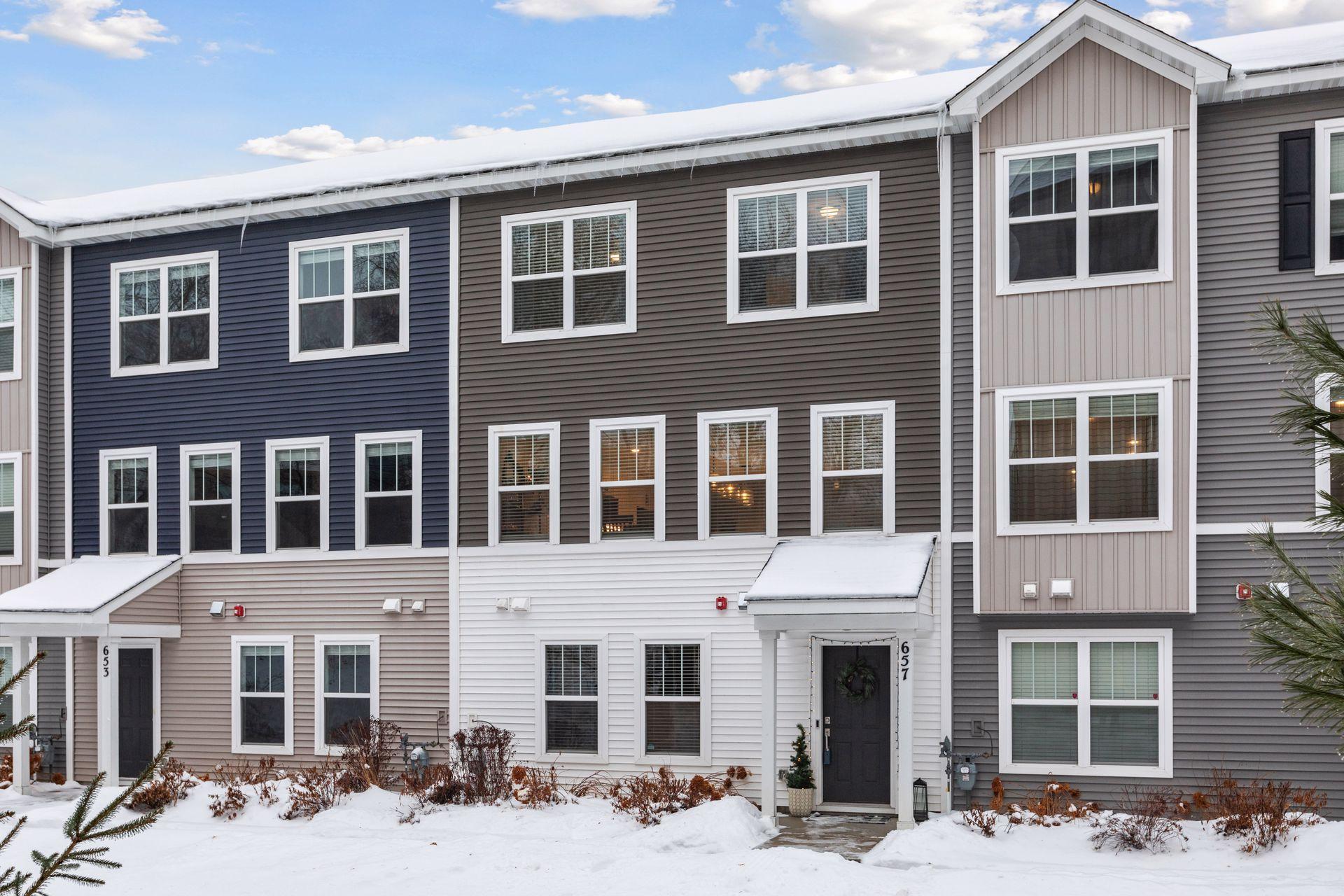 This meticulously maintained townhome, built in 2021, offers 3 bedrooms plus a flexible bonus room, 4 bathrooms, and 2,142 finished square feet of thoughtfully designed living space. The upgraded kitchen is the heart of the home, featuring stainless steel appliances, quartz countertops, a ceramic tile backsplash, soft-close cabinetry, and an impressive 10-foot island. Enhanced with custom window treatments and upgraded light fixtures throughout, the open-concept main level flows seamlessly from the expansive kitchen to the dining area and spacious living room, with direct access to the deck—perfect for everyday living and entertaining alike. The upper level is ideally laid out with all three bedrooms on one floor, including a private primary suite with an ensuite bath and generous walk-in closet, as well as a conveniently located laundry room. The lower-level flex room, currently used as a home office, offers versatility and can easily be converted into a fourth bedroom. Located just minutes from Long Lake, Hansen Park, restaurants, coffee shops, and the community center, this low-maintenance home also provides quick access to Highway 694 and I-35W for an easy 20-minute commute to Minneapolis or St. Paul. A rare combination of modern comfort, convenience, and location—this home is truly a must-see.