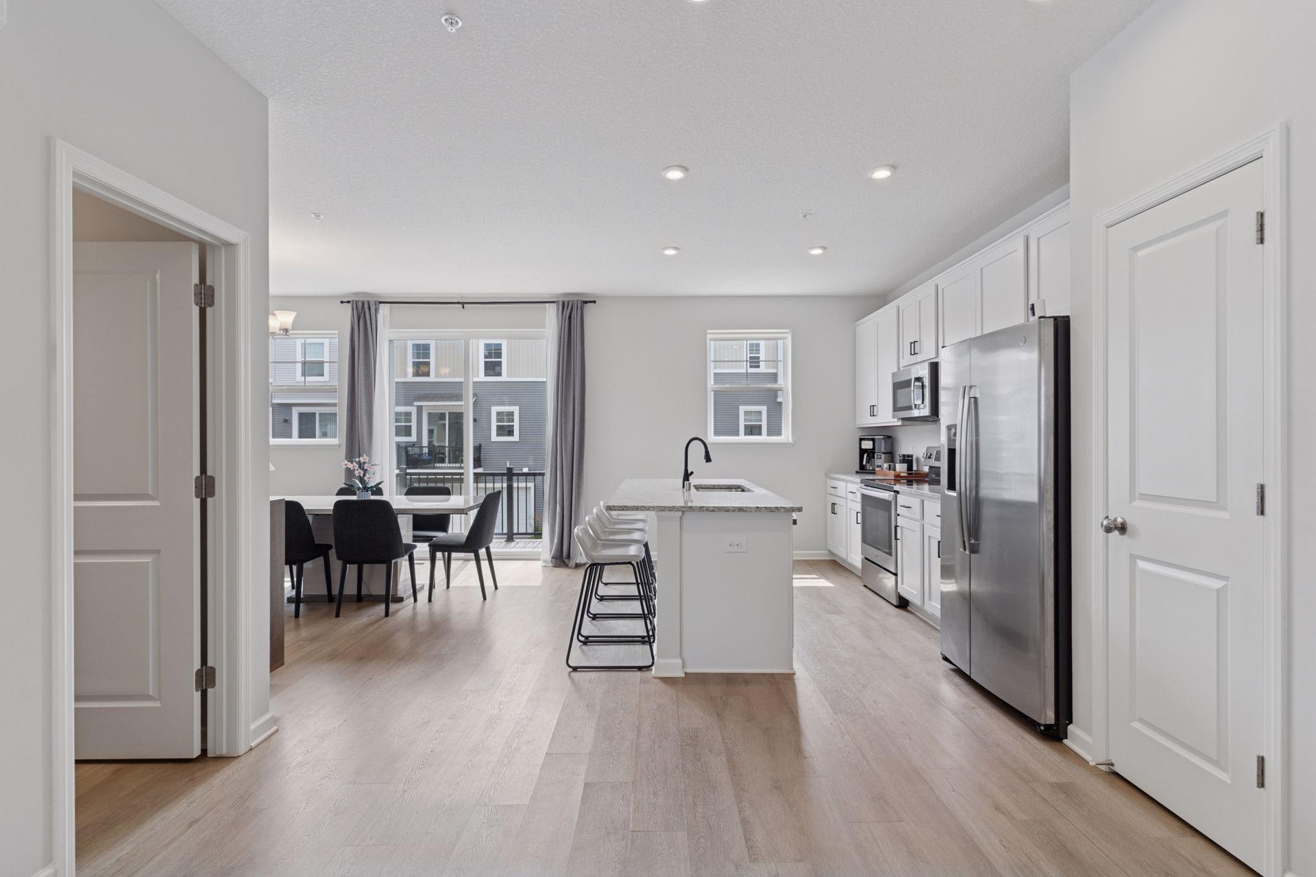 Bright and welcoming 4-bedroom, 4-bath townhome offering the perfect blend of comfort and convenience. The open main level is ideal for everyday living and entertaining, with a spacious living room, stylish kitchen, dining area, and walkout deck for enjoying the outdoors. Upstairs, you’ll find three bedrooms, including a private primary suite with its own bath, plus a full bath and laundry for easy living. The finished lower level adds even more flexibility with a fourth bedroom and bath—perfect for guests, a home office, or a hobby space. Newer construction means modern style and low-maintenance living in a home you’ll love. Just steps from the scenic 18-mile Gateway State Trail—perfect for biking, walking, and year-round outdoor adventures. Stroll to the restaurants, bars, and boutique shops of historic downtown North St. Paul, and enjoy quick access to Highway 36 for an easy commute.