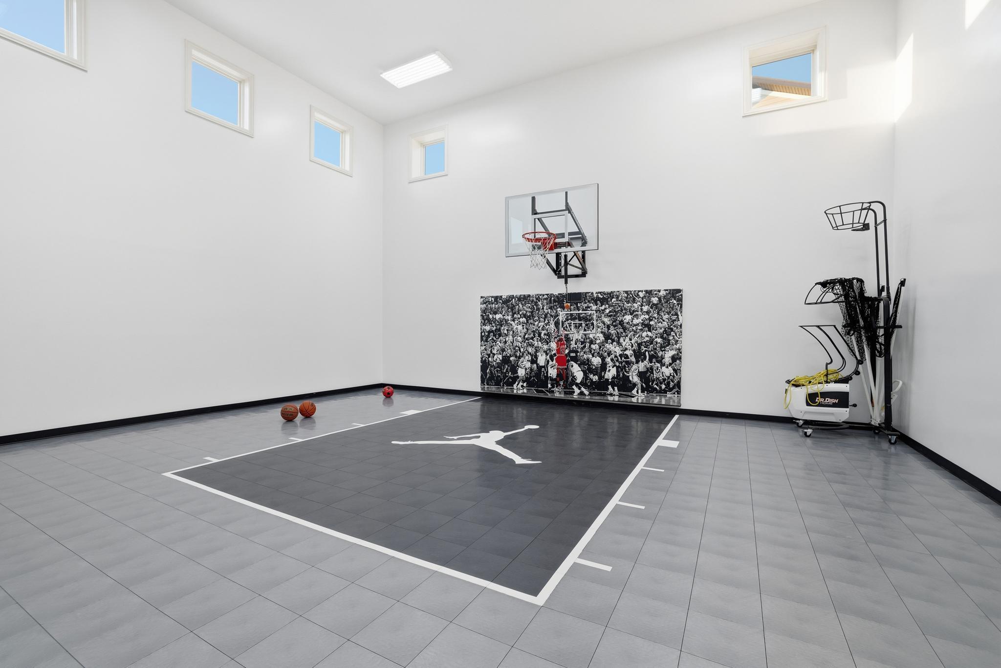 Experience a million-dollar view with this stunning custom-built two-story walk-out home, featuring high-end finishes throughout! Enjoy the convenience of a heated four-car garage with a new heated epoxy floor. For sports enthusiasts, there's a massive sport court that's perfect for a workout—NBA players welcome! The exterior boasts LP SmartSide siding, complemented by Pella windows that ensure top-notch quality. Step inside to find heated floors in the primary bath, a heated sport court floor, stylish tile flooring, and beautiful granite countertops in the gourmet kitchen, which also includes a walk-in pantry and double ovens. This home is designed for coziness and warmth with three fireplaces and a large deck that's ideal for entertaining guests. Upstairs, you’ll find numerous conveniences, including the luxurious primary suite, a laundry room, four additional bedrooms, and a flexible den room above the garage. This exquisite property is truly a must-see!