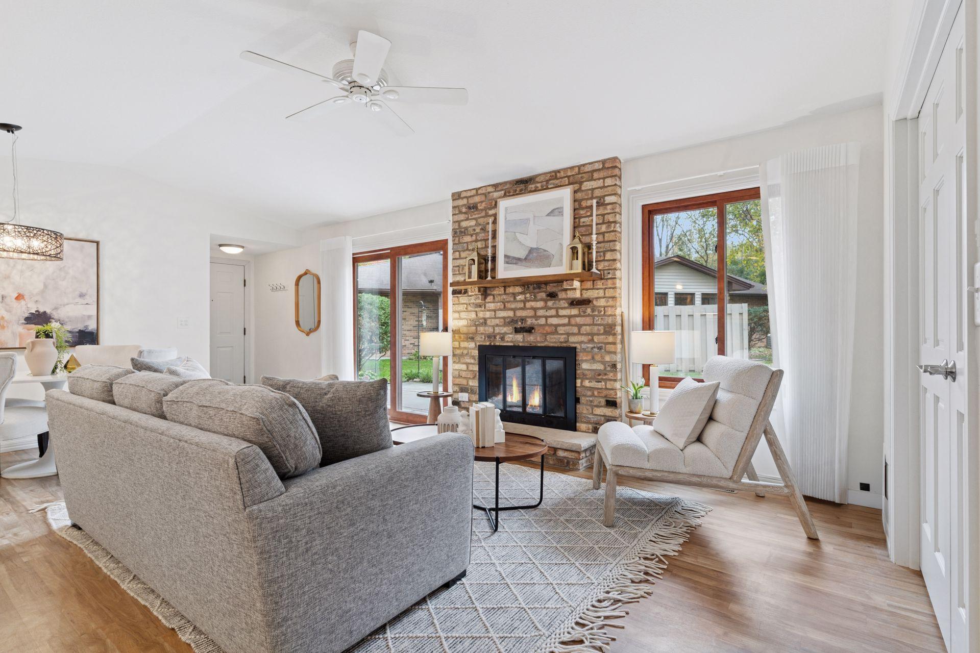 Welcome to Cimarron Ponds. Experience exceptional one-level living in this beautifully renovated townhome, tucked away on a peaceful cul-de-sac within the highly desirable Cimarron Ponds community. Surrounded by a serene, wooded backdrop, this residence combines thoughtful ADA-compliant design, architect-quality finishes, and modern comfort in perfect harmony. Home Highlights: Location & Setting, Quiet circular cul-de-sac offering privacy and minimal traffic. Direct access to nature by way of the Luce Line Trail Beautiful wooded backyard with instant access to nature. Brick and wood construction for timeless appeal. Design & Renovation. Complete architect- and designer-led renovation (2018/2019) Quality craftsmanship with stylish, cohesive finishes throughout. Abundant natural light from numerous windows and doors. Open-concept layout with vaulted ceilings and focal point brick fireplace with mantel. Accessibility & Comfort. True one-level living — no stairs, no barriers. ADA-compliant: wide doorways, tasteful grab bars, and a roll-in shower Primary suite with accessible en-suite bath featuring hand-held and fixed showerheads. Kitchen & Living Spaces: Center-island kitchen with raised-panel cherry cabinetry. Stainless steel appliances and tiled backsplash. Quality luxury vinyl plank flooring throughout. Dedicated office with custom built-in roll-out storage. Washer/dryer and storage area conveniently located. Garage & Outdoor Living Two-stall attached garage with opener, built-in cabinets, shelving, and pegboard wall for tools Newer concrete patio offering privacy and relaxation in a natural setting. This home truly offers the best of both worlds — modern design and comfort in a quiet, nature-filled community. Move-in ready and designed for all stages of life, this is Cinnamon Ponds living at its finest.