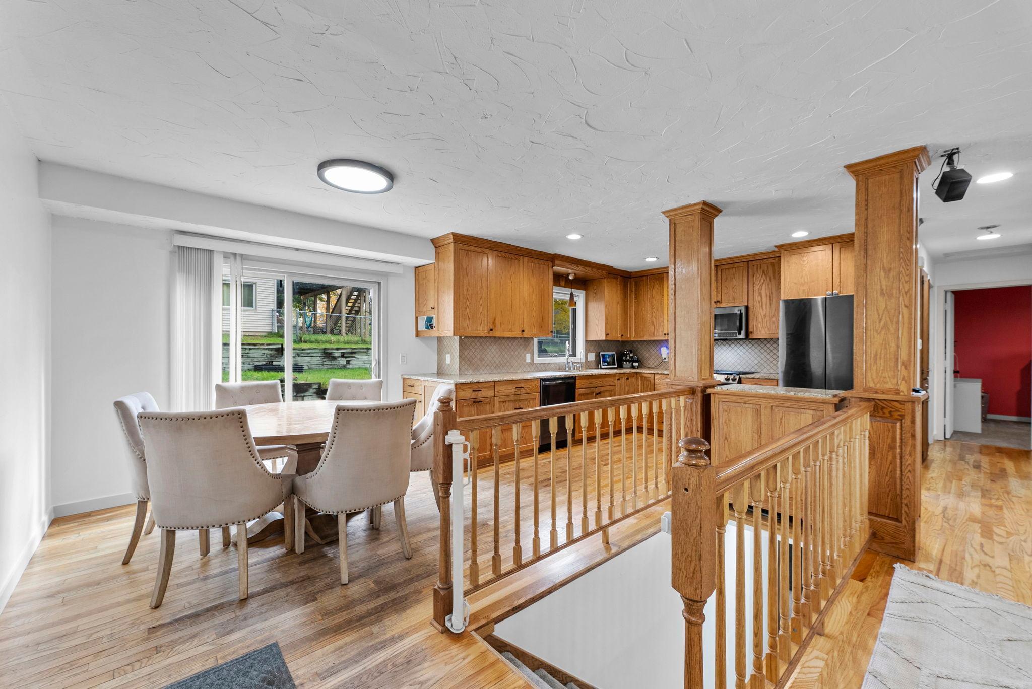 Beautiful rambler with additional heated garage. This well-maintained rambler offers the perfect blend of comfort, function, and style with two spacious garages and numerous recent updates throughout! The attached garage (22' x 27') provides convenient everyday parking, while the detached heated garage (23' x 31') with 9-foot doors is ideal for hobbyists, storage, or larger vehicles. Step inside to an inviting open-concept main level featuring hardwood floors, fresh paint, and a remodeled bathroom with subway tile, slate flooring, and shiplap accents. Fall and Winter lake views from the living room. The kitchen is a showstopper, boasting custom oak cabinetry, granite countertops, tile backsplash, black stainless-steel appliances with a gas range, under-cabinet lighting, and recessed lighting. Enjoy outdoor living on the massive 22x14 deck, perfect for entertaining or relaxing. The lower level features a large family room, 3rd bedroom, laundry/ storage and a 3/4 bathroom. There is also an additional kitchen, offering great flexibility for guests, extended family, or future rental potential. Recent updates include a new roof in 2023, new windows in 2024, new water heater in 2024, new furnace in 2021, new carpet in 2022, and a freshly painted exterior. This home combines classic craftsmanship with thoughtful modern upgradesāmove-in ready and built to impress! Settled between Prior Lake and Spring Lake this home has a great location. Walking distance to multiple parks in the area. FHA assumable mortgage at 3.75% is an added bonus.