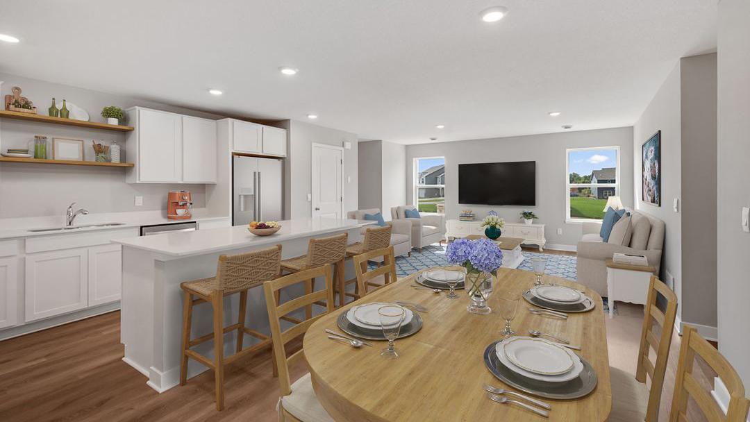 Introducing The Harlow — the first single-level floor plan in this beautiful association-maintained twin home community! Thoughtfully designed and just the right size, this brand-new home offers easy, open-concept living. A spacious kitchen anchors the main living area, featuring a large island with stone countertops and stainless steel appliances — blending beauty with low-maintenance functionality. Oversized windows fill the living and dining areas with natural light, creating a bright and inviting space to gather or unwind. With no stairs to navigate, daily living is simplified. The main-floor laundry is conveniently located near the bedrooms, making routines easy and efficient. The primary suite offers a peaceful retreat, complete with a walk-in closet, step-in shower, and a private patio door leading to your own wetland view. An oversized two-car garage provides plenty of space for both vehicles and storage — ideal for hobbies, gear, or tools. Looking to stay active? You’re just minutes from Elm Creek Park Reserve, and several lakes and rivers. Kayaking anyone? Nestled on the edge of the countryside but only a short drive to Maple Grove, you’ll enjoy quick access to shopping, dining, and I-94. The Harlow is the perfect blend of comfort, convenience, and connection to nature — all in a home that fits just right.