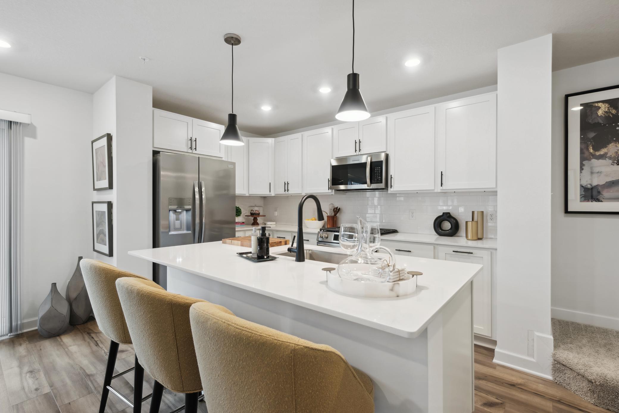 Home is under construction and will be complete in June! This stunning two-story townhome boasts a spacious 2-car garage and sits on a generous homesite. As you enter this contemporary end unit, you'll discover a stylish open-concept layout on the first floor featuring a Great Room, dining area and kitchen complete with a kitchen island and stainless steel appliances. The first-floor living space flows seamlessly outdoors to a patio perfect for relaxing and enjoying the low-maintenance yard. Upstairs, a loft provides additional shared living space and is accompanied by two secondary bedrooms and a luxe owner's suite with a retreat, making it the perfect retreat after a long day. Showcasing a highly functional layout and complete with all the upgrades and features modern homebuyers seek, this home won't last long. Includes Lennar's home automation features and HOA maintenance for lawn care, snow removal, garbage/recycling, community irrigation and access/upkeep of future amenities to make homeownership life as easy as possible.
