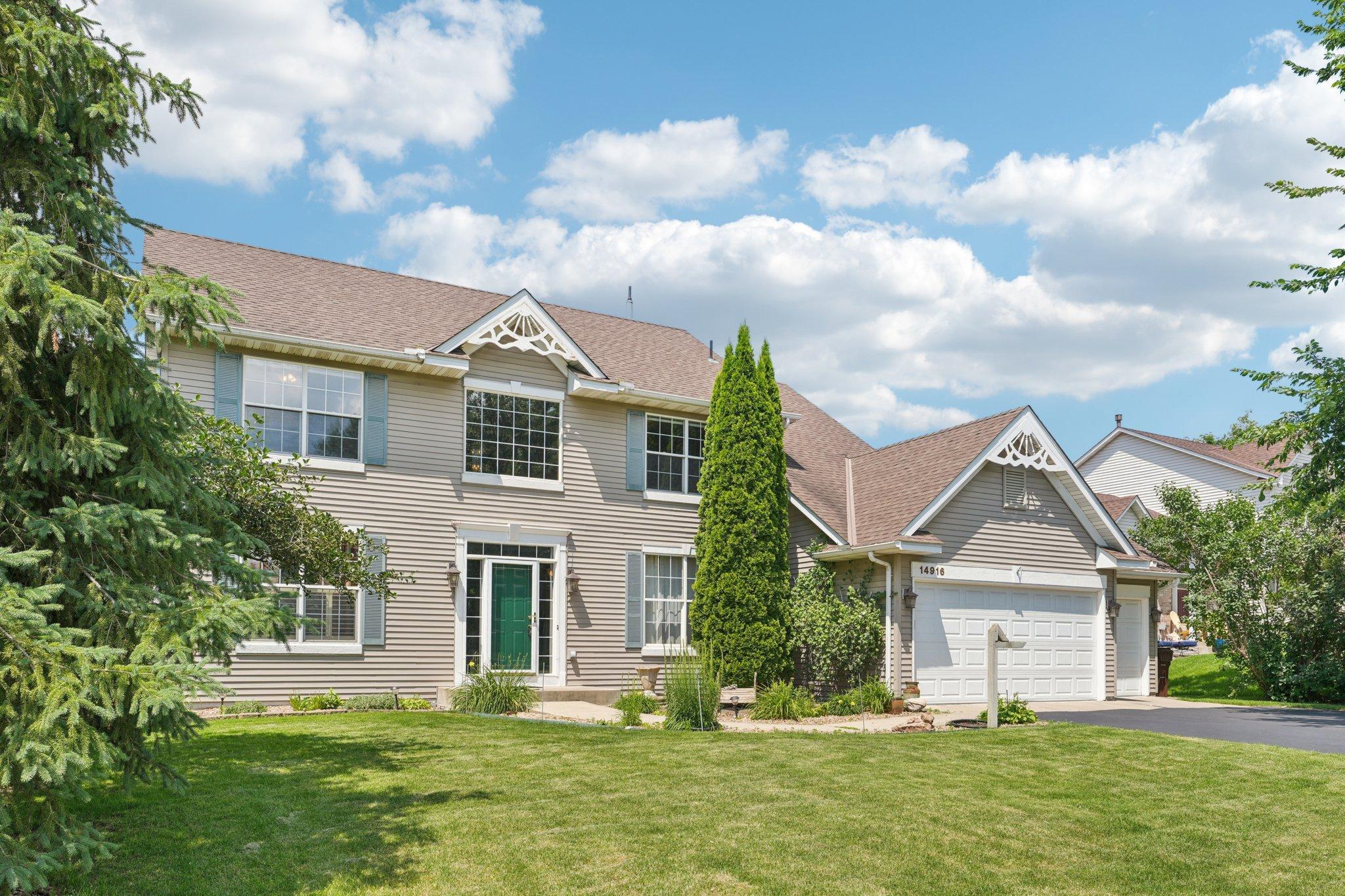 Welcome to 14916 Overlook Drive, a spacious and beautifully maintained colonial-style two-story home nestled on a tree-filled lot and backyard, in the desirable Prior Lake/Savage ISD 719 School District. This 5-bedroom, 4-bathroom home offers a thoughtfully designed living space, including a walkout lower level and a large 3-car garage(740 sq. ft). The front foyer is flooded with natural light from the oversized windows. To the left of the foyer is a dedicated office/den that features double-glass doors and a built-in desk/bookcase. To the right a formal dining room awaits you that can also be used as an additional flex space. The heart of the home lies in the open-concept living room, kitchen, and informal dining area. The kitchen boasts stainless steel appliances(brand new refrigerator and stove 2025), a center island, ample cabinetry, and direct access to the backyard deck via a sliding glass door. Just beyond the kitchen, you'll find a well-designed mudroom leading to the 3-car garage, along with a convenient laundry room and a main-level 1/2 bathroom. Upstairs, retreat to the spacious primary suite through French doors. The ensuite features dual sinks, a jetted tub, a separate walk-in shower, and a large walk-in closet. Three additional bedrooms and a full bathroom complete the upper level, offering plenty of space for family or guests. The fully finished walkout basement includes a large family room, a fifth bedroom, a 3/4 bathroom. Step outside from the lower level to the patio and enjoy the serene backyard with mature trees and a composite storage shed that stays with the home. Enjoy peaceful surroundings, mature landscaping, and the convenience of a prime Savage location close to schools, parks, shopping, and major commuting routes.