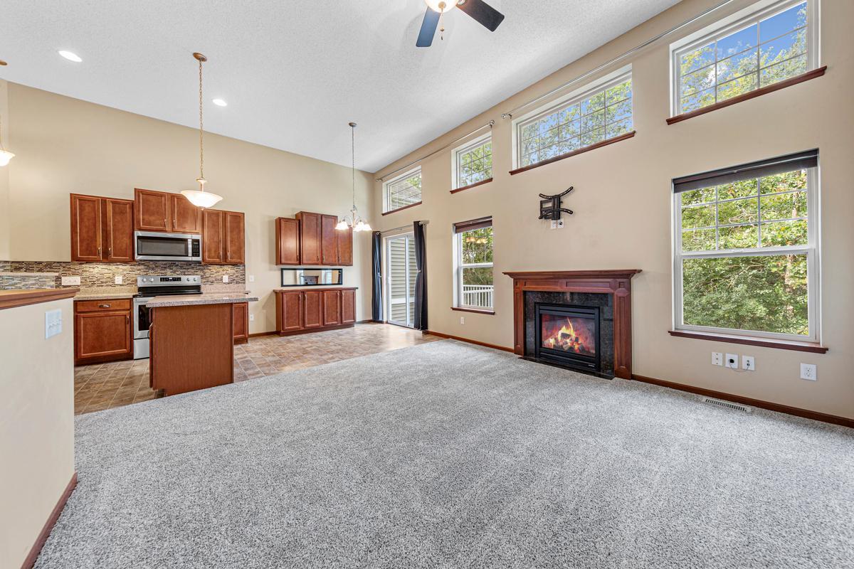 Welcome to this well cared for 3-bedroom, 3-bathroom townhome in the desirable Creekside neighborhood! The open-concept main level is bathed in natural light, thanks to soaring vaulted ceilings and numerous windows. The modern kitchen features newer stainless steel appliances and granite countertops, flowing seamlessly into the dining area and a cozy living room with a gas fireplace. Upstairs, you'll find a spacious primary suite with a private en-suite bath and the convenience of bedroom-level laundry. Enjoy total peace of mind with a new HVAC system, new water heater, and new carpet throughout. Step out from the dining area onto your private deck, which backs up to a serene wooded area for ultimate privacy. This home is perfectly located just moments from Prior Lake/Savage High School, Red Tail Ridge Elementary, and the beautiful trails of Murphy-Hanrehan Park Preserve. Move-in ready and waiting for you.