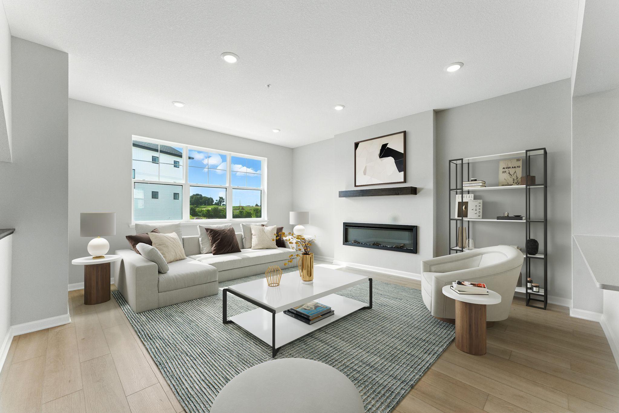 Ask about rate incentives and 2/1 buydowns! 4.875%/4.924% APR if closings by Dec. 19th with preferred lender. Welcome to the newest townhome neighborhood on the west side! This Brooks floorplan has long VIEWS from the balcony of wetlands and nature! Now Completed and ready for it's first owner! All appliances included! The inviting kitchen is a showstopper with the perfect space for entertaining with a center island PLUS a generous peninsula workspace, adding more countertops, cabinetry and counter-seating for 8. If you have a knack for hosting, this kitchen provides the ideal setting to create and share delicious meals with family and friends. A spacious family room with a sleek electric fireplace and mantel, generous dining area, and balcony round out the first floor. Located upstairs, are 3 bedrooms, each offering a peaceful sanctuary where you can escape the hustle and bustle of daily life. The owner's suite has dual-sinks, large walk-in shower and spacious walk-in closet. Laundry is also located upstairs with washer/dryer, along with another full bath. The 2-car garage ensures that you'll always have ample parking space for your vehicles, and the full basement with a spacious recreation room offers additional space for an additional family room, workout room, or home office. Enjoy the Victoria lifestyle and an association-maintained community. Beautiful views of nature, miles of trails, and minutes from shopping, restaurants, parks, golf courses and easy access to highway 212. Note: a future city of Victoria park will be located on the north side of the neighborhood!