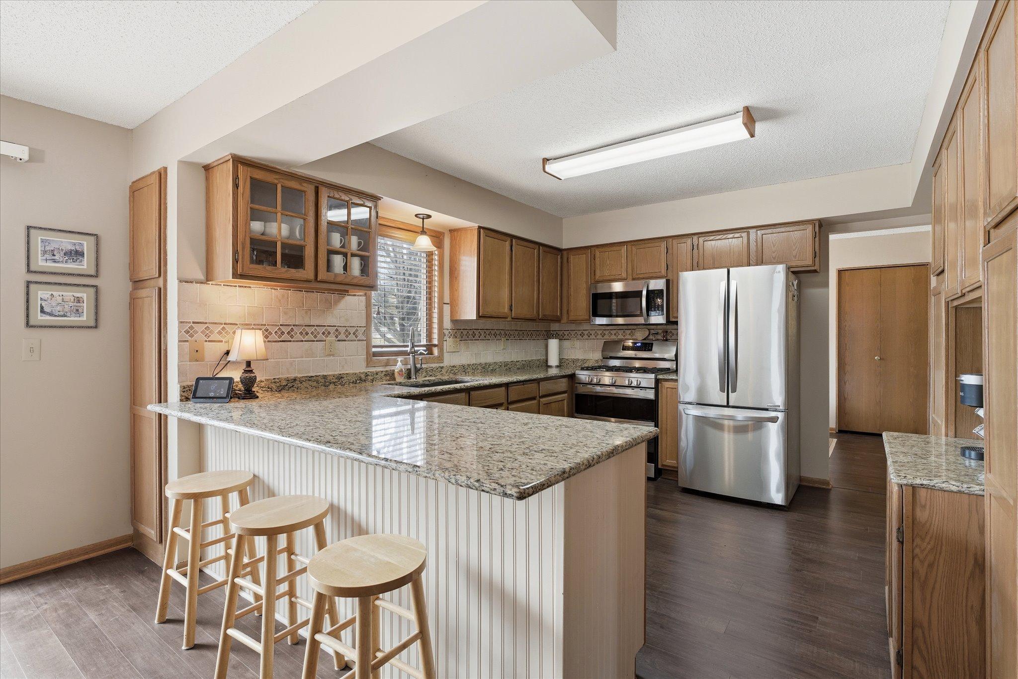 Located in the highly desirable Colby Lake neighborhood, this beautifully updated home sits on a spacious corner lot and offers fantastic living space throughout. The upgraded kitchen features granite countertops, stainless steel appliances, and a stylish tile backsplash. New flooring, fresh paint, and updated lighting add a modern touch throughout the home. The main level offers multiple living areas including a bright living room, comfortable family room, and a versatile flex space that can serve as a home office or formal dining area. Upstairs, you’ll find four spacious bedrooms, including an oversized primary suite complete with a walk-in closet, private bath, and additional flex space—perfect for a sitting area, nursery, or private office. The finished lower level provides additional recreation space along with a fifth bedroom. A rough-in for a fourth bathroom offers the opportunity to expand and build instant equity if desired. Enjoy easy access to neighborhood trails that connect to Woodbury’s extensive trail system, and take advantage of the home’s convenient location just minutes from Colby Lake, shopping, dining, and everyday amenities.