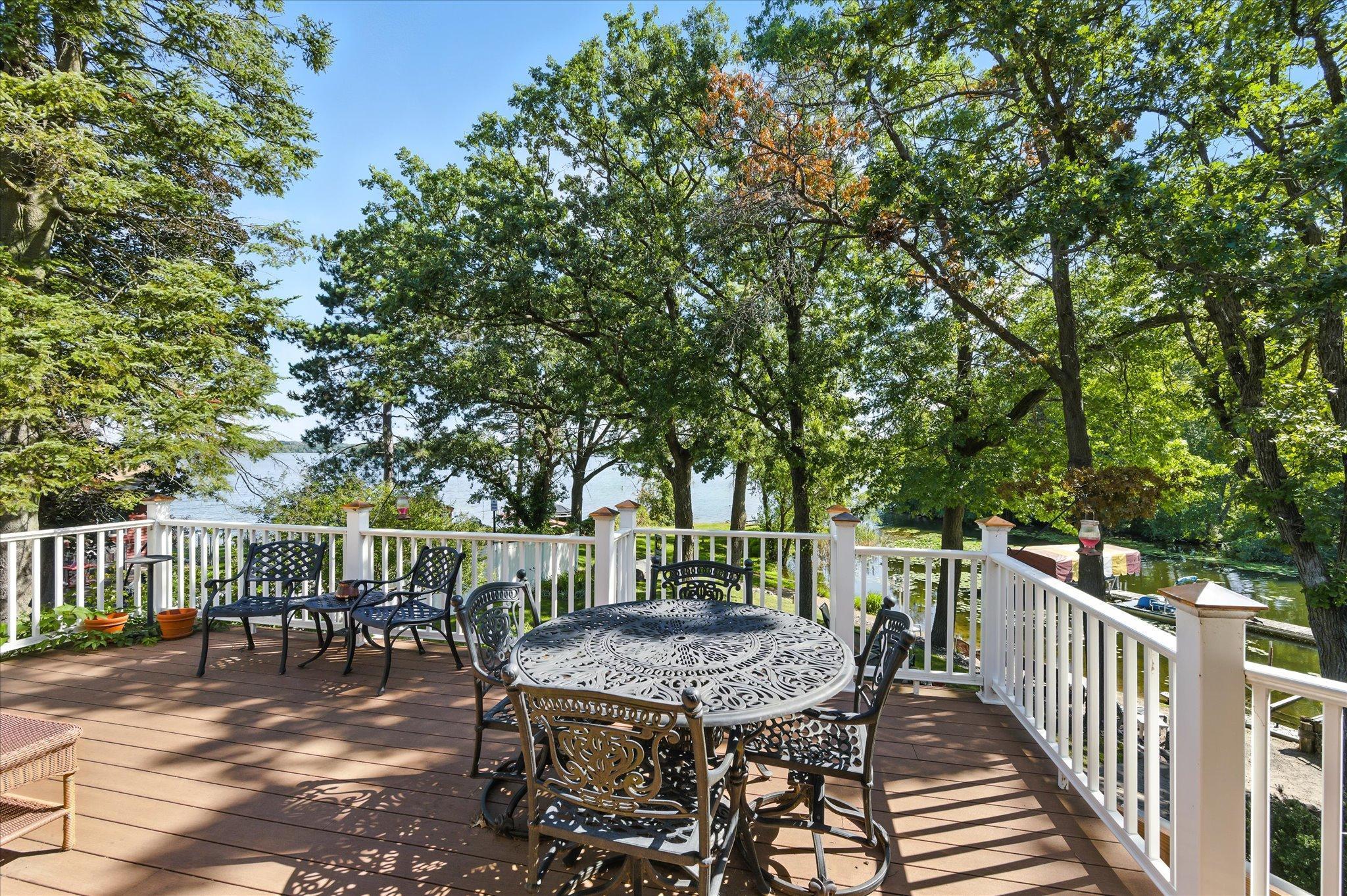 Beautiful lot on Lake Fremont with 175 feet of shoreline. Located on the main lake but siding to the safe harbor of the channel with the dock system, boat slip and boat lift that can stay in year round, for the best of both worlds. Sandy beach, tons of perennial gardens and a must see stone patio and stone steps that make visiting this yard and lake truly like a walk in the park. Boat, swim and fish in this fully recreational lake. This 1958 rambler was brought in to a new basement in 1998 and has been fully engineered to include incorporation a large stylish spiral stair to the lower level. an attached garage was built as part of this renovation in 1998. the seller has obtained a variance from the city so a new owner could build a 20 x 38 garage. The home is currently used as a 2 bedroom with the third used as an office/mudroom/guest room. One of the original bedrooms was also made into a dining room and wet bar area that enjoys beautiful views of the lake along with the living room and kitchen. A new energy efficient on demand hot water heating system was put in Fall of 25. The lake facing deck has a cantilevered balcony and under decking that creates a sheltered outdoor living space for gathering and grilling that starts with the outdoor patio which extends along a path to the sandy beach. Large storage shed currently used for snowmobile storage. Covered dog kennel. Must see property with so many transitional uses. Make it your own!