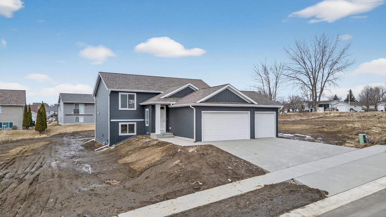 Welcome to this beautifully finished split-entry home at 6151 Cody Lane NW in Rochester, designed to offer modern appeal and everyday comfort. The exterior features clean lines, low-maintenance siding, and attractive stone accents that create welcoming curb appeal. A spacious, maintenance-free deck and rear patio provide ideal spaces for relaxing or entertaining, while the concrete driveway and professionally finished landscaping complete the outdoor setting. Inside, natural light fills the open and inviting layout. Main living areas feature durable luxury vinyl plank flooring, custom cabinetry, and quartz countertops, creating a space that is both stylish and functional. The kitchen flows seamlessly into the dining and living areas and is accented by a tiled backsplash. Bathrooms, entry, and laundry areas are finished with tile flooring, while bedrooms and the lower-level family room offer plush carpet for added comfort. You've got to see this one before it's gone!